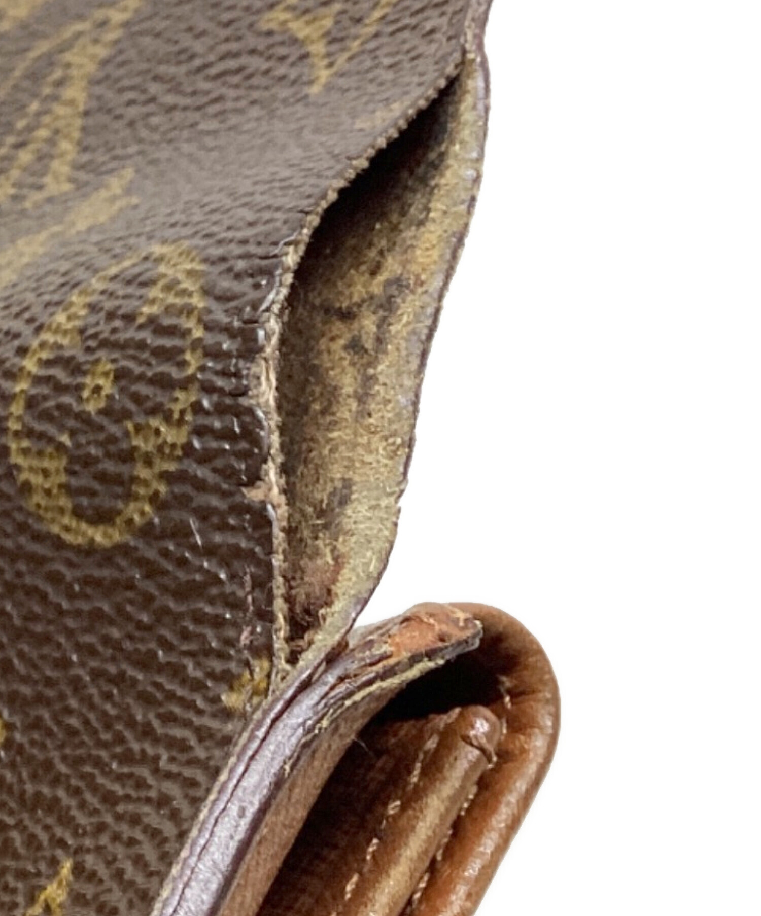 • LOUIS VUITTON(ルイ ヴィトン)LOUIS VUITTON (ルイ ヴィトン) モノグラム ポルトトレゾール・インターナショナル 3つ折り財布 ブラウンの古着・服飾アイテム 側面、コバ破れ・ほつれあり