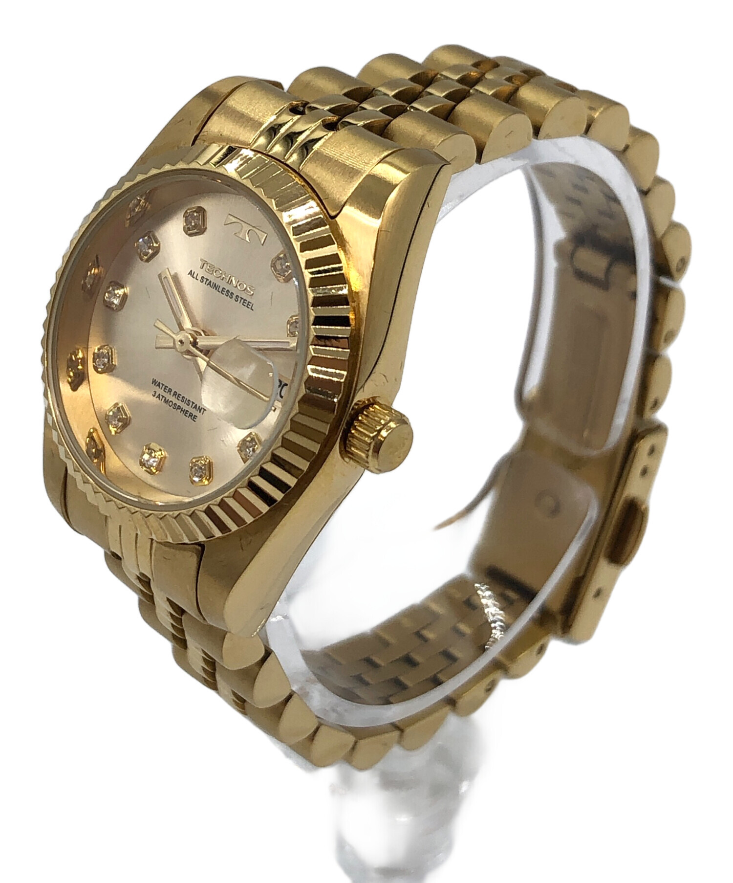 | スタッフコメント | TECHNOS(テクノス)の腕時計(T6923)、ゴールドカラー。 宝石のようなパーツが輝くデザインで、手元を上品に演出。 3針にカレンダー機能が搭載されており、コンパクトならがも満足の機能性。 |