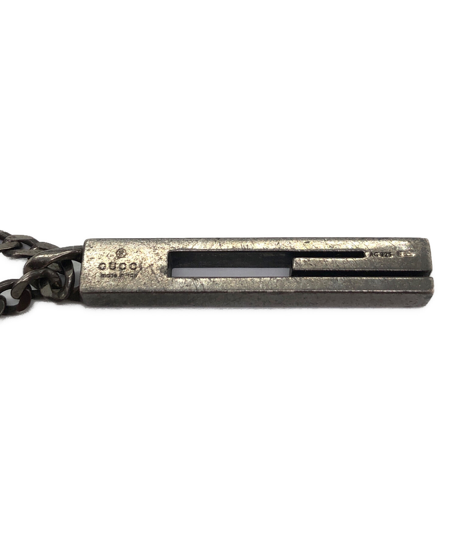 | スタッフコメント | GUCCI(グッチ)のGモチーフネックレス。 ブランドの頭文字『G』をモチーフに、バー状にデザインされた斬新なスタイル。 スターリングシルバーを証明する「925」も刻印されており、大人のコーディネートにぴったりです。 |
