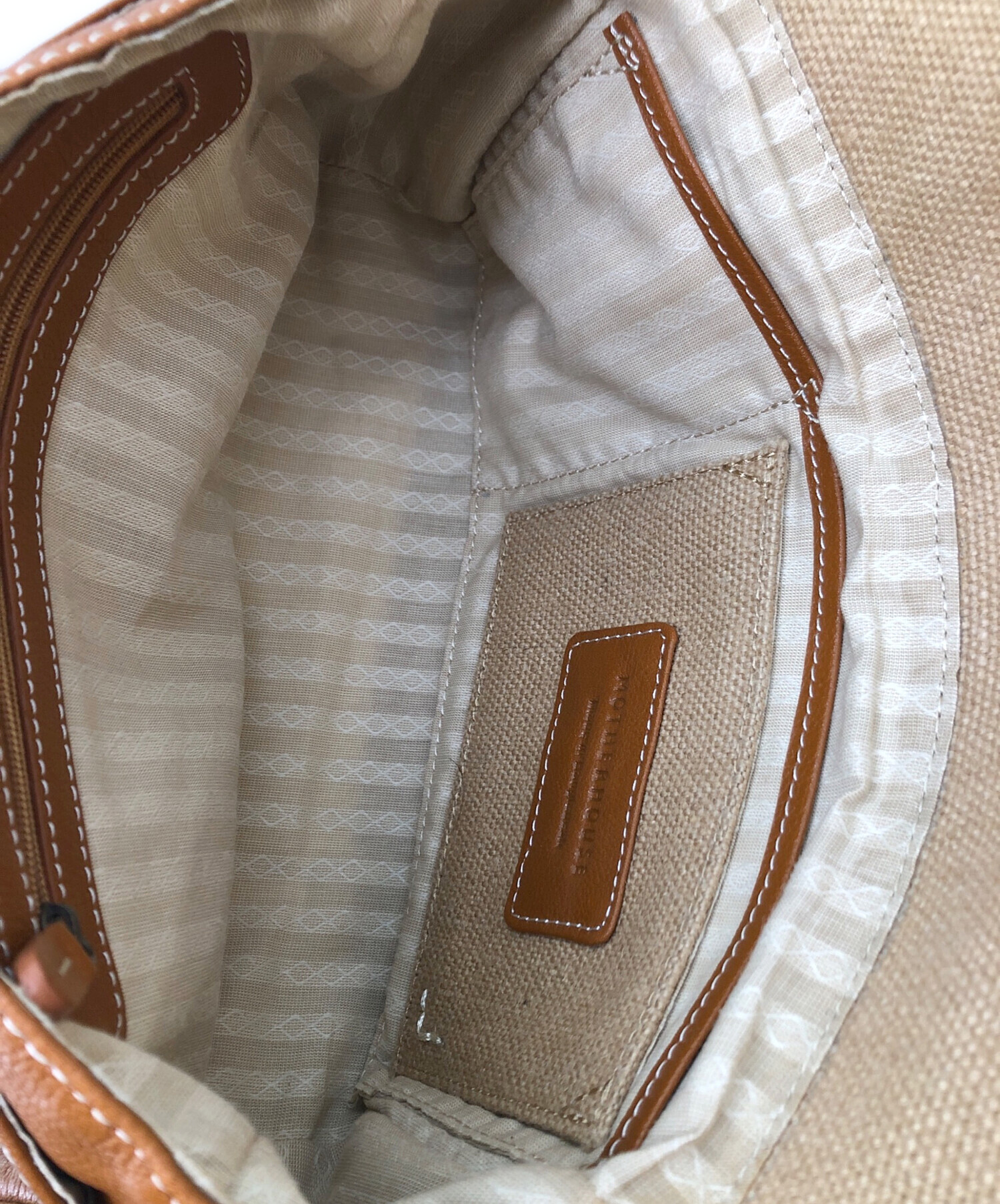 | スタッフコメント | MOTHERHOUSE(マザーハウス)のショルダーバッグ。 麻素材 レザー素材 ブラウンカラー クロスボディバッグ。 |