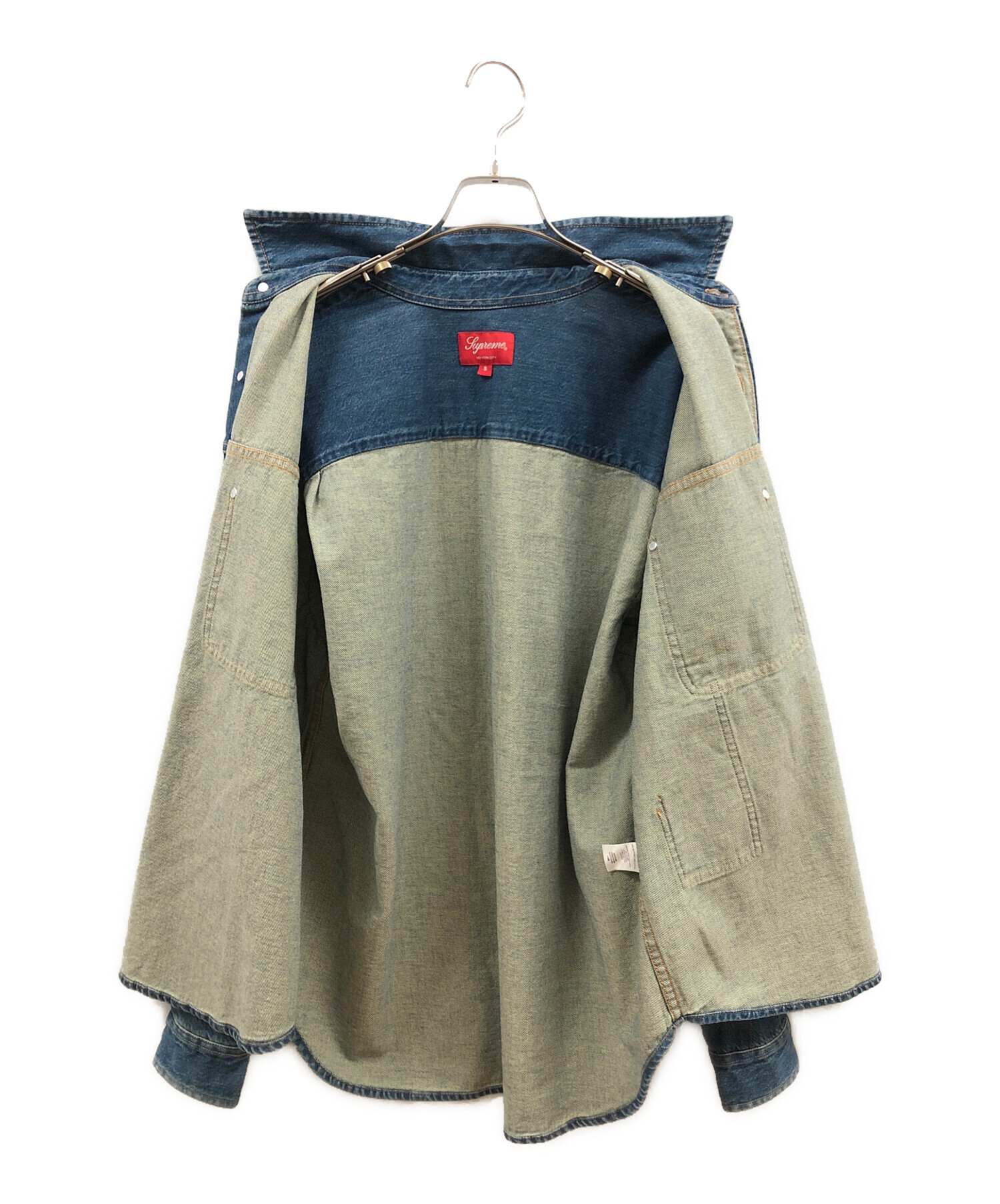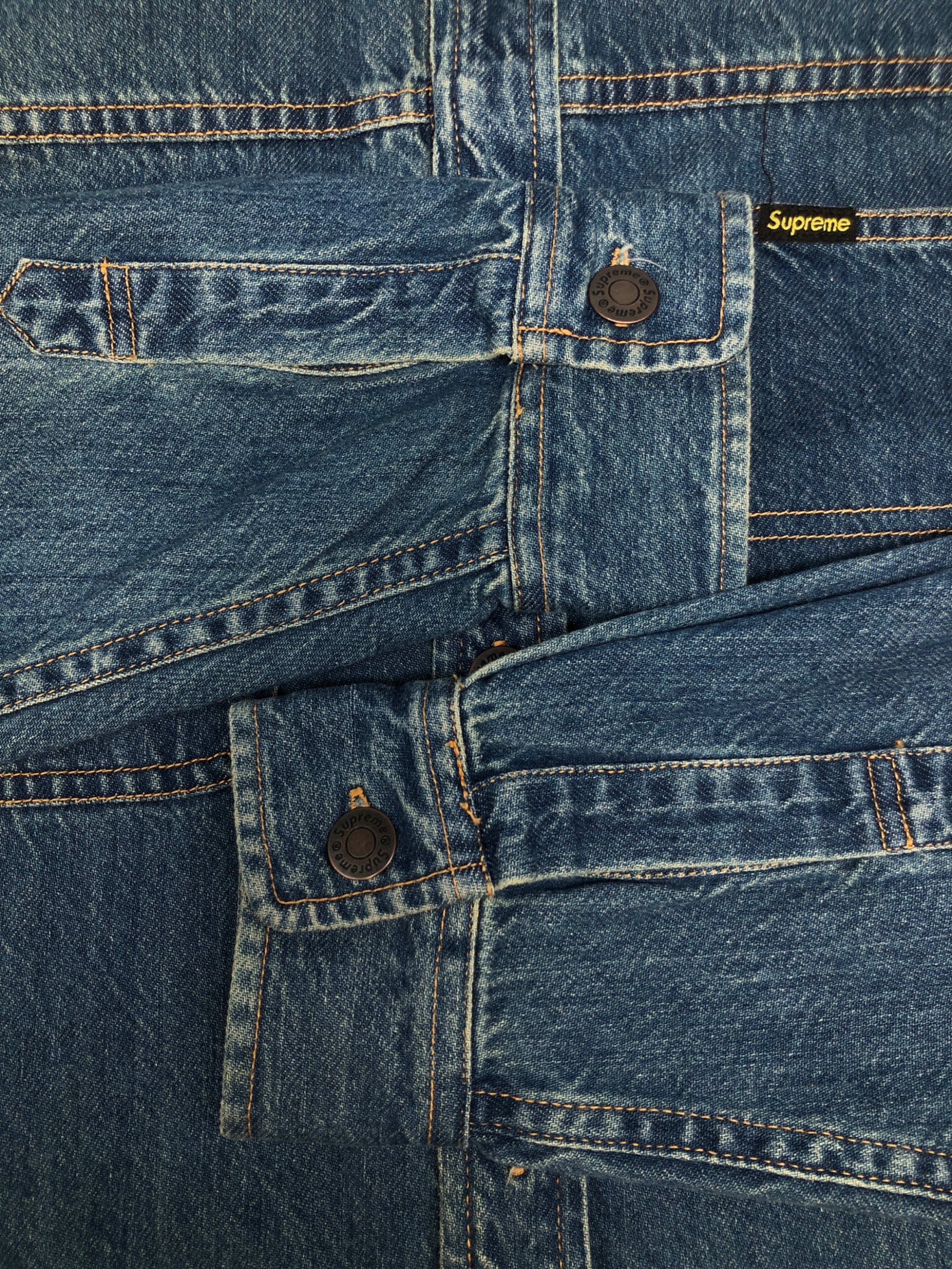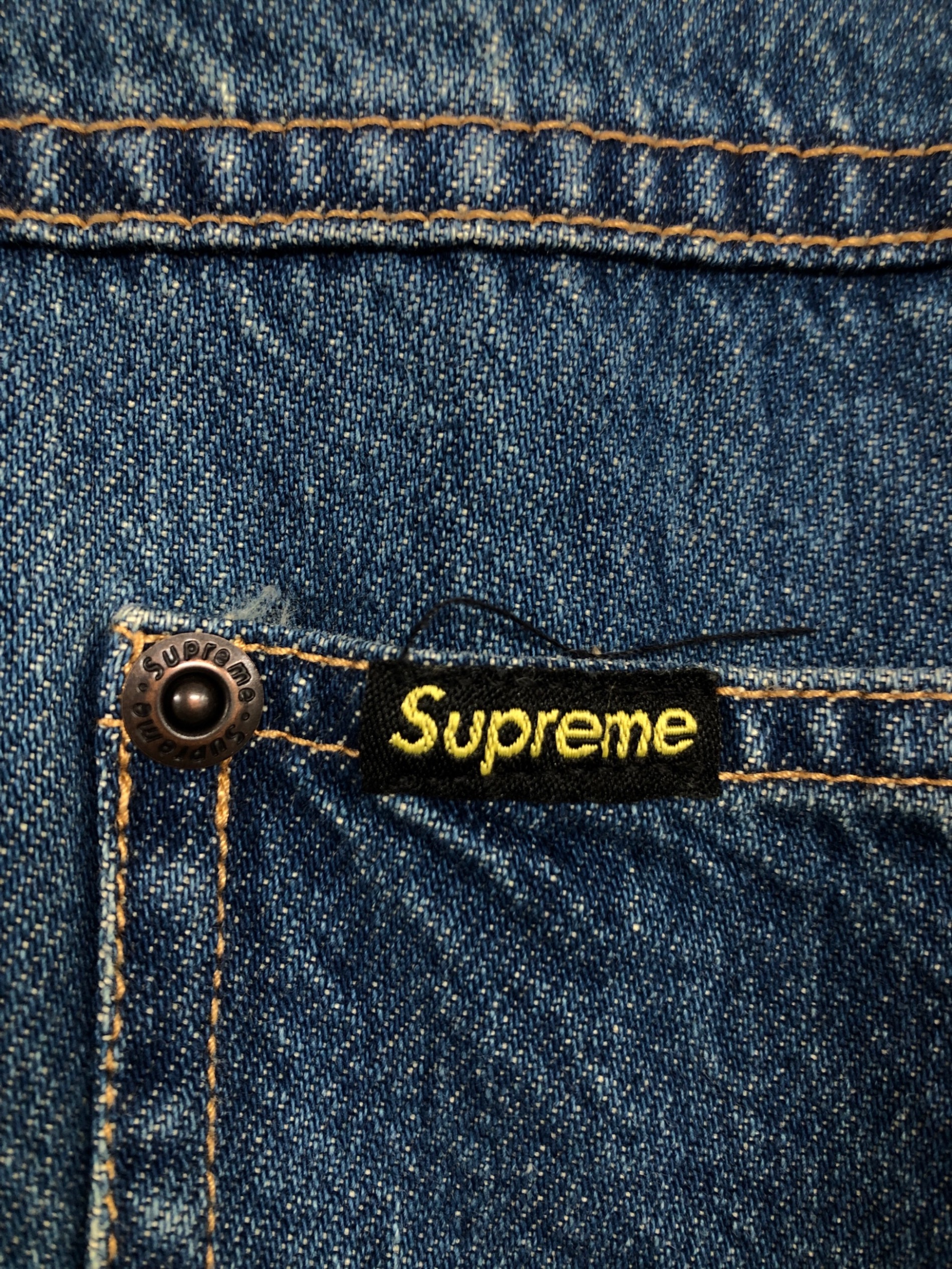| スタッフコメント | Supreme(シュプリーム)のDenim Painter Shirt(デニムペインターシャツ)。 ブルーのヴィンテージ感溢れるゆったりサイズのアイテムとなります。 黄色のステッチがアクセントで、ボタン一つの細部まで拘られています。 |