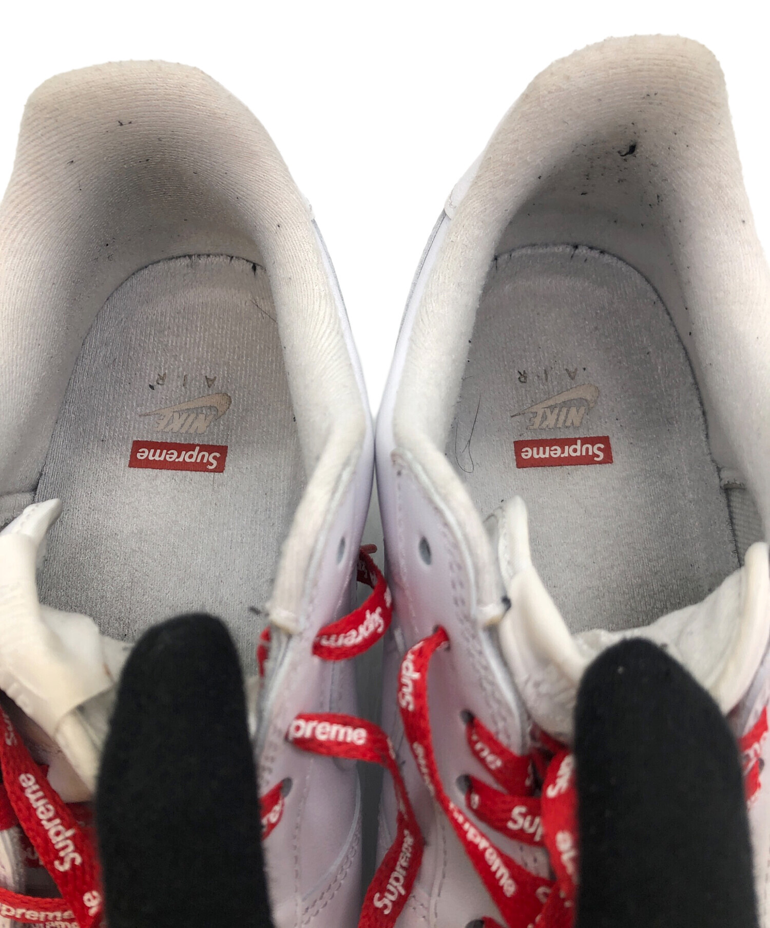 • NIKE(ナイキ)NIKE (ナイキ) SUPREME (シュプリーム) Air Force 1 Low(エアフォース1 ロー) ホワイト サイズ:SIZE 28.5cmの古着・服飾アイテム インソール、ヨゴレあり。内側かかと部、毛玉付着あり。
