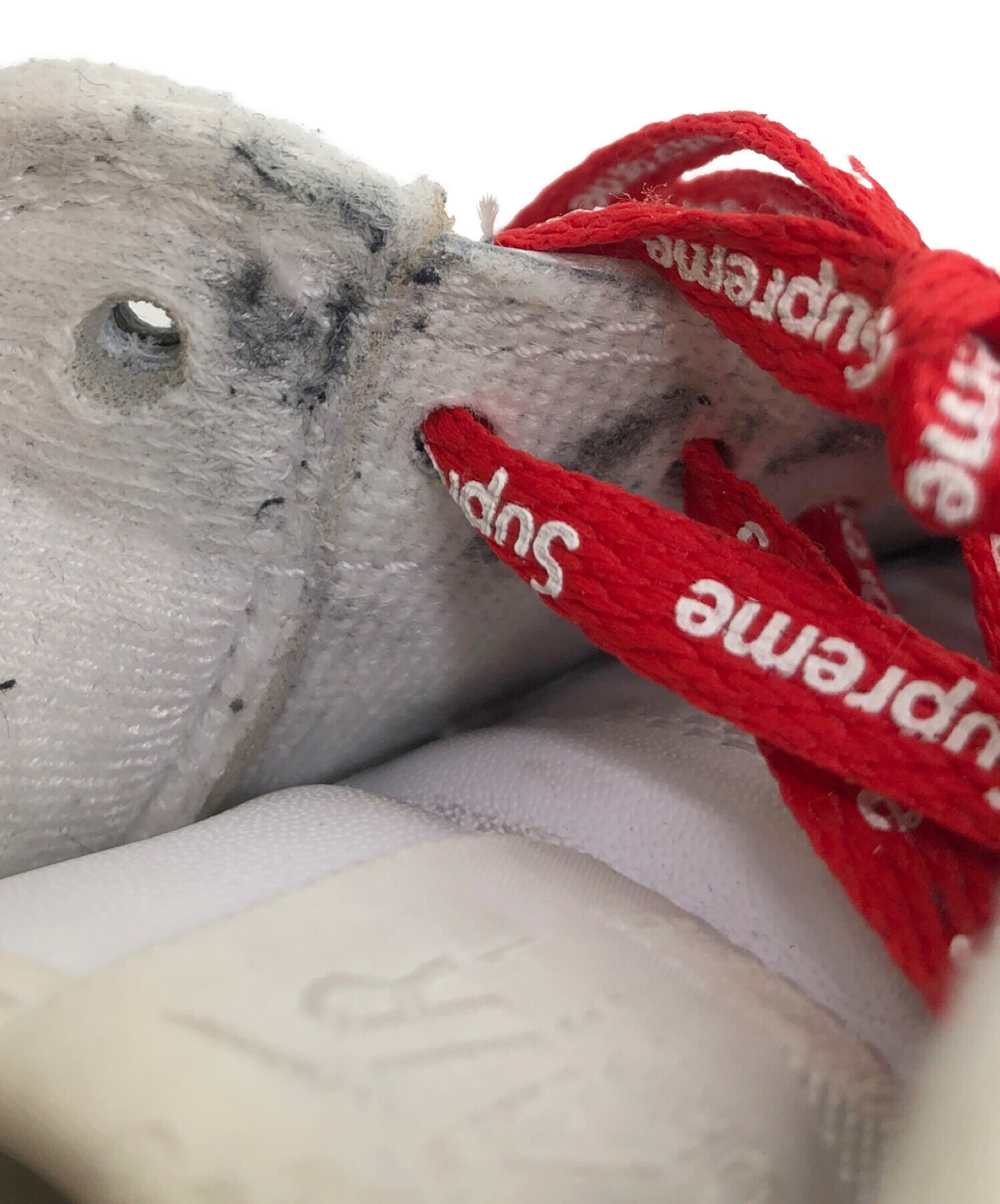 Supremeコラボレーションモデル(CU9225-100) スニーカー ヒール部分とデュブレにロゴ刻印。