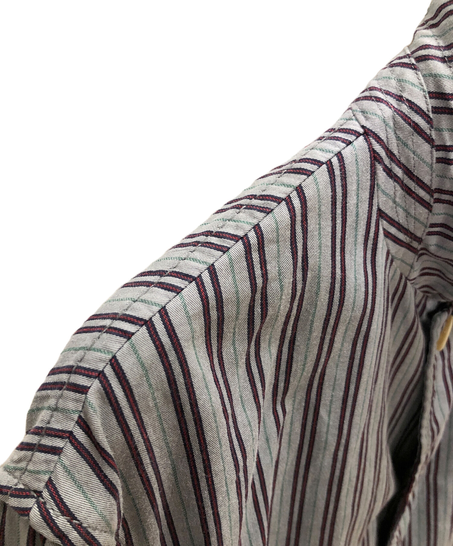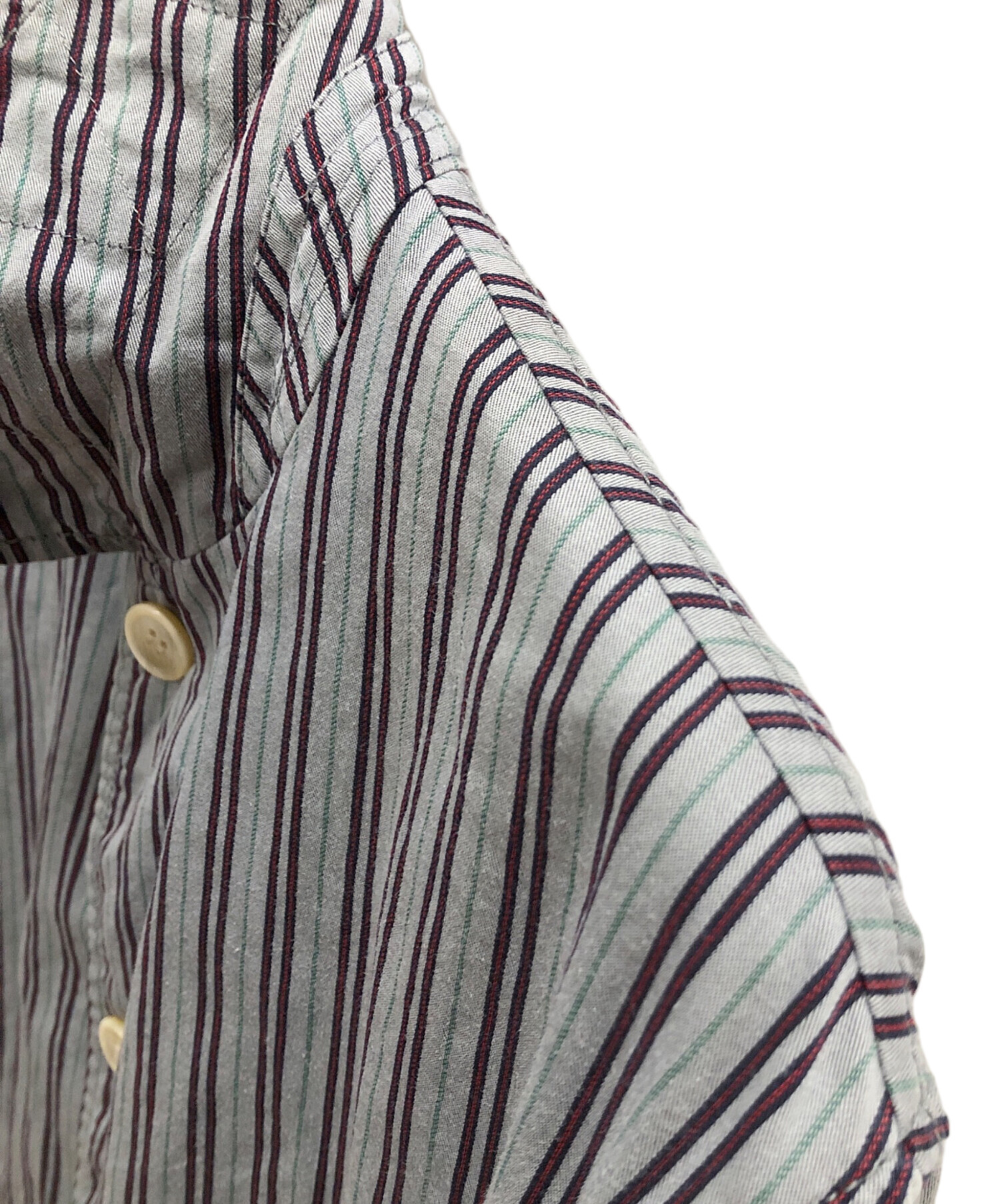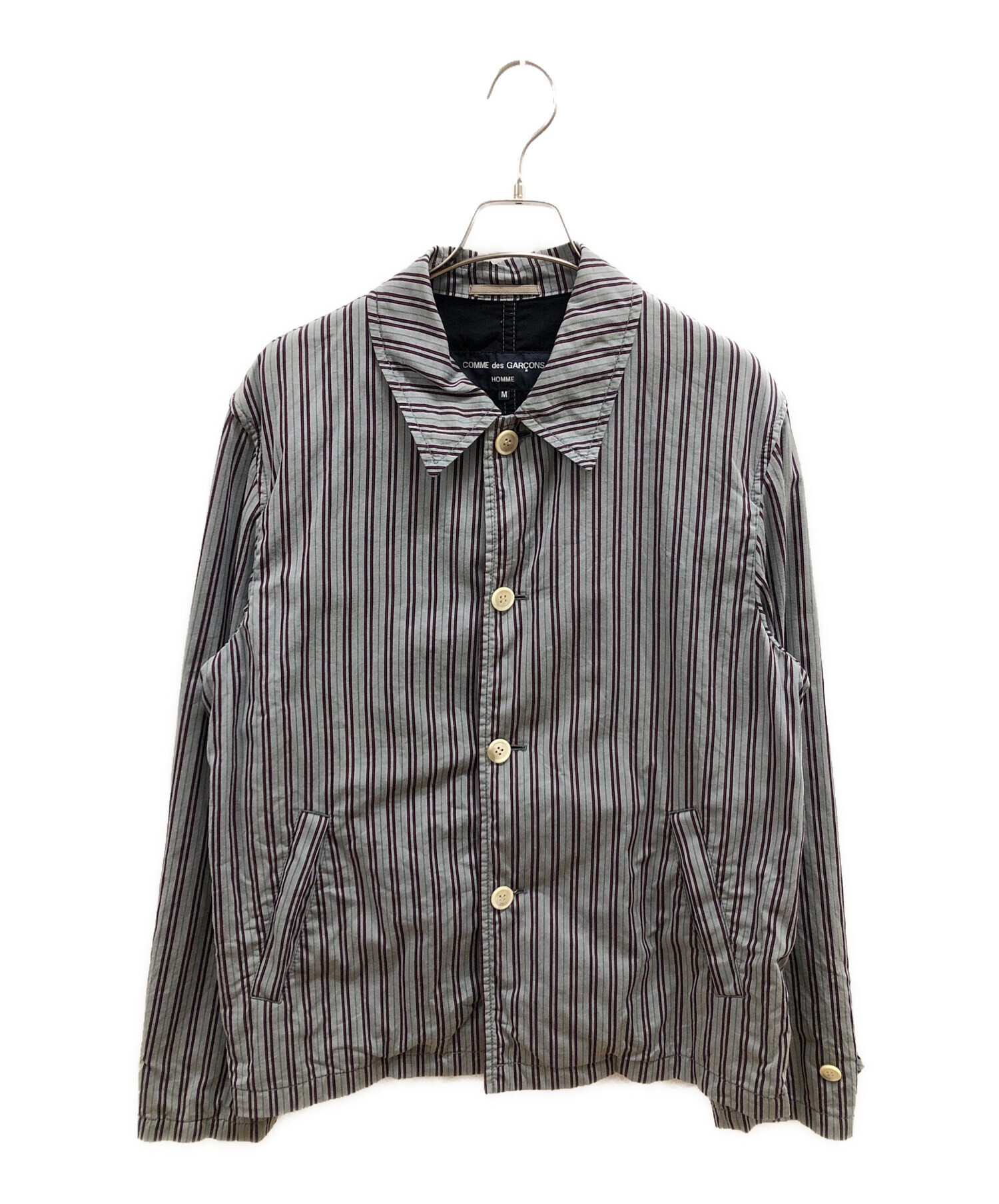| スタッフコメント | COMME des GARCONS HOMME(コムデギャルソン オム)HM-J070。 グレーをベースに、グリーン、ネイビー、レッドのストライプ柄が織り込まれているジャケット。 |