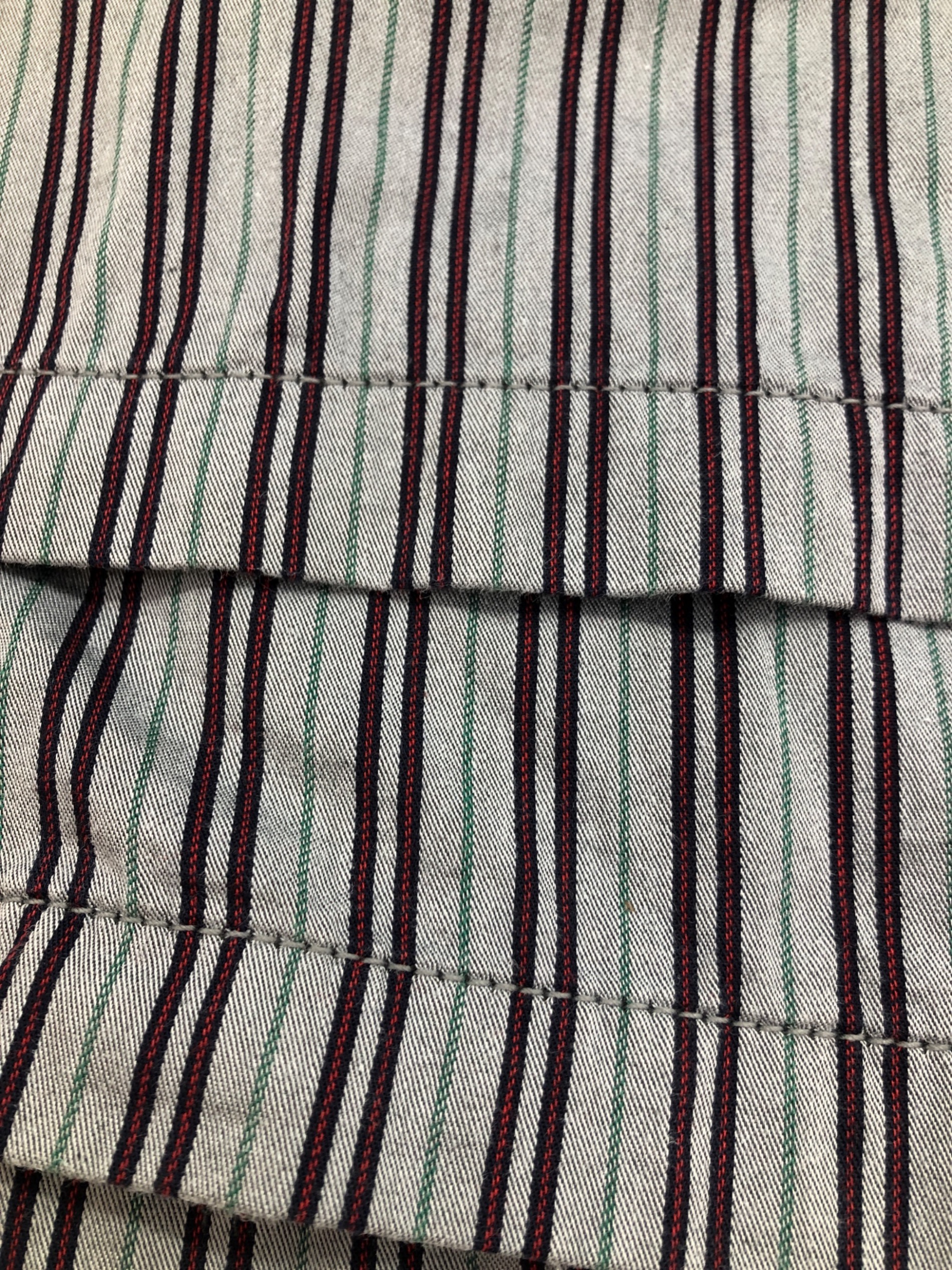 | スタッフコメント | COMME des GARCONS HOMME(コムデギャルソン オム)HM-P003。 グレーをベースに、グリーン、ネイビー、レッドのストライプ柄が織り込まれているパンツ。 |