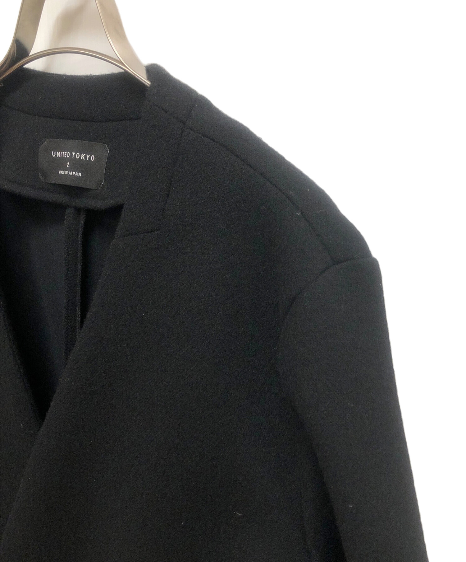 | スタッフコメント | UNITED TOKYO(ユナイテッドトーキョー) ボンディングメルトンVネックコート ブラック 無地 Aライン ひざ下丈 メルトン素材 |