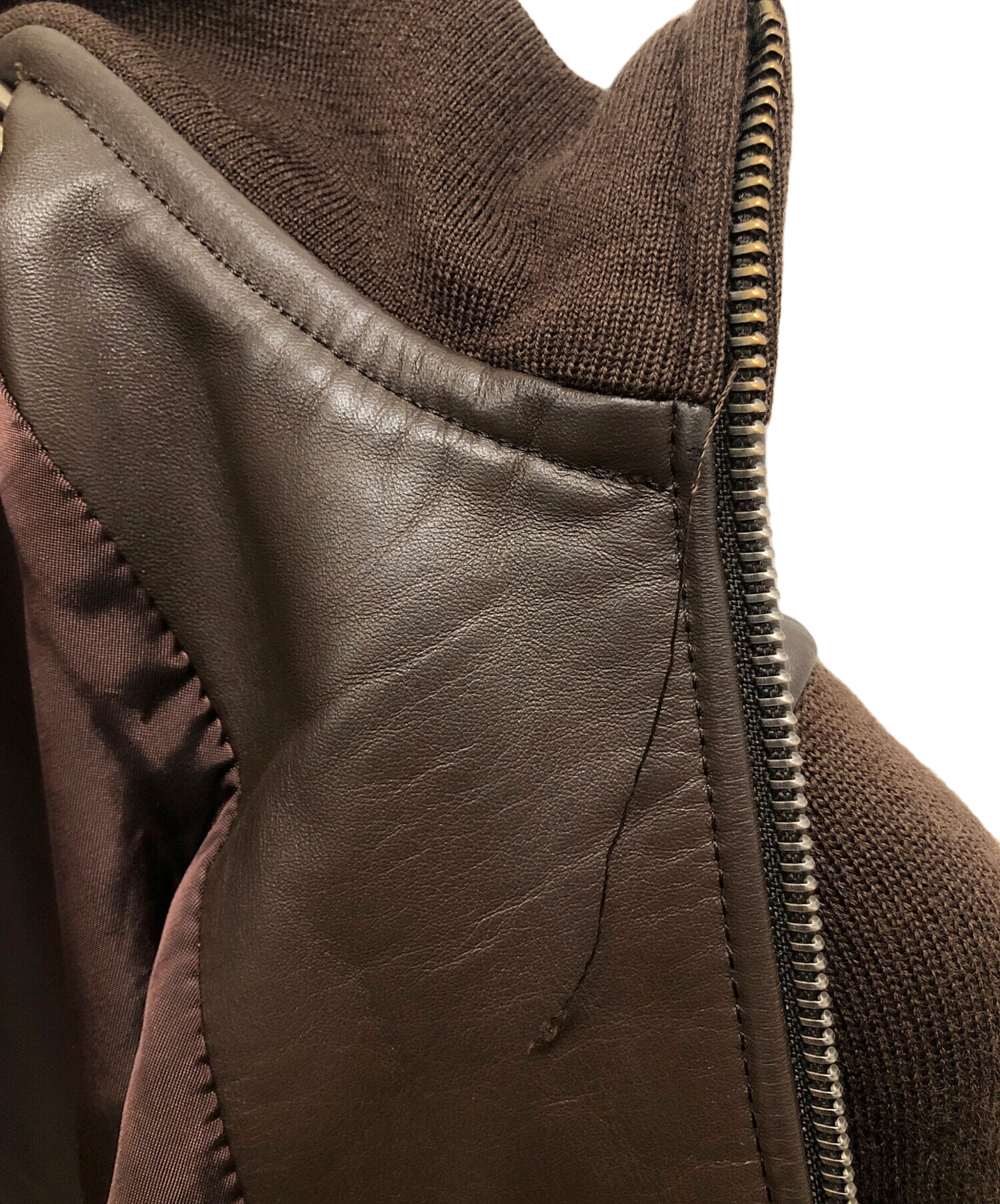 牛革 袖切り替え ニット生地