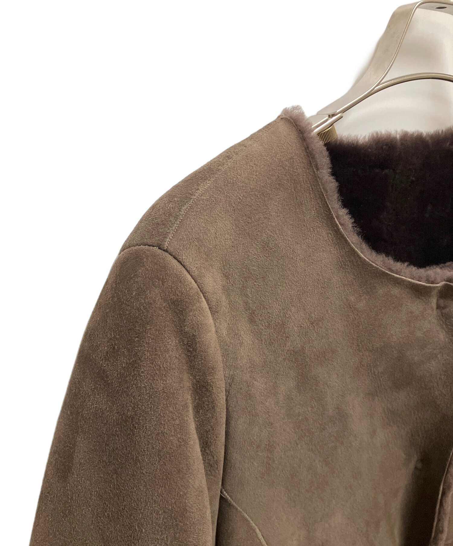 | スタッフコメント | BALLSEY(ボールジィ) ロングコート ブラウンカラー 無地 羊革 ムートンコート ノーカラーコート |