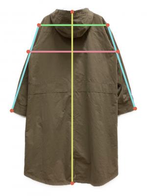 首の縫い合わせの中心から裾までの長さ