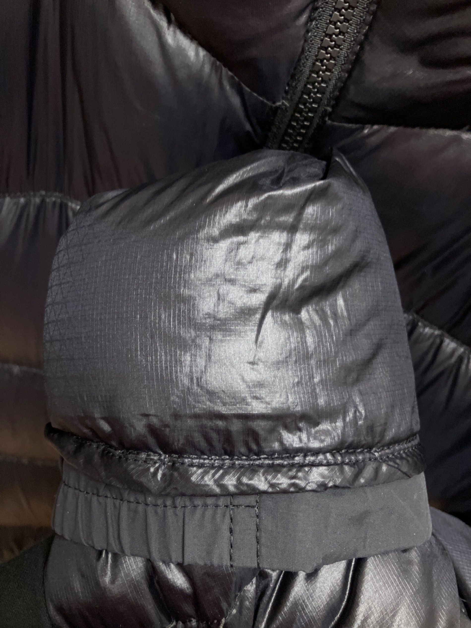 • THE NORTH FACE(ザ ノース フェイス)THE NORTH FACE (ザ ノース フェイス) アコンカグアフーディー ダウンジャケット ブラック サイズ:SIZE Mの古着・服飾アイテム 右袖、修繕痕あり