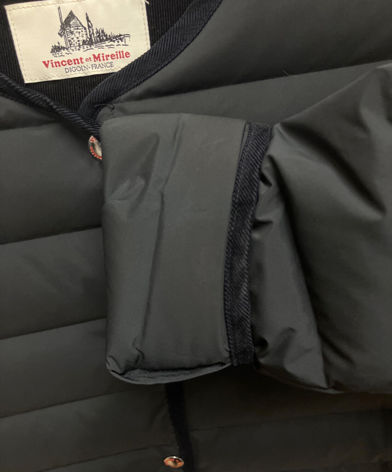 | スタッフコメント | Vincent et Mireille(ヴァンソンエミレイユ) ダウンコート ブラックカラー 無地 ボタン式開閉 ノーカラー |