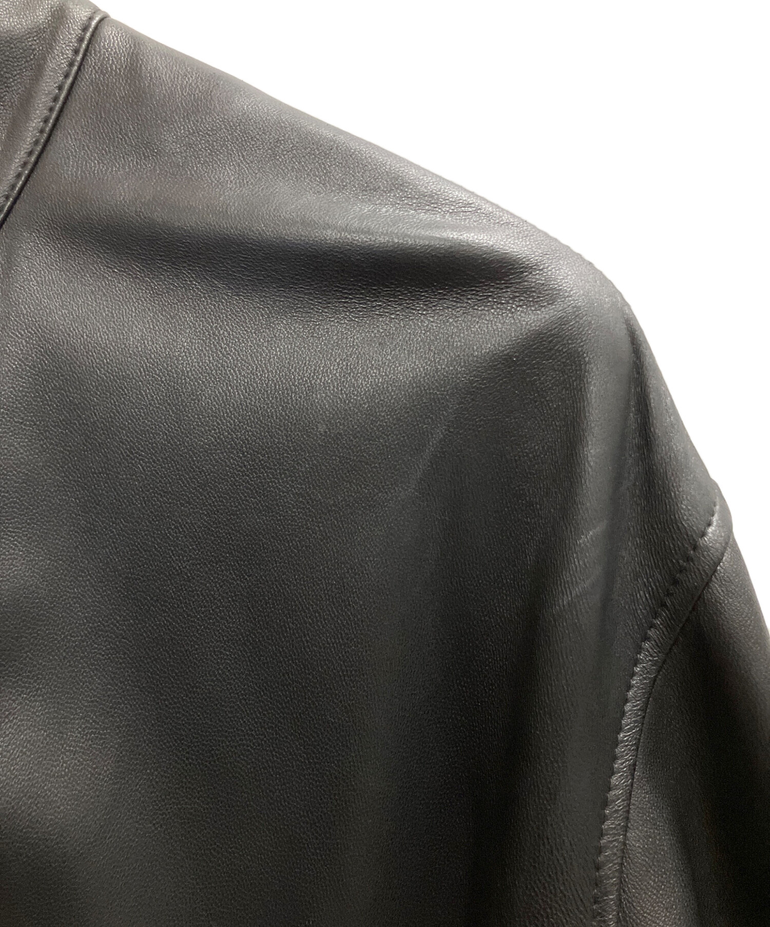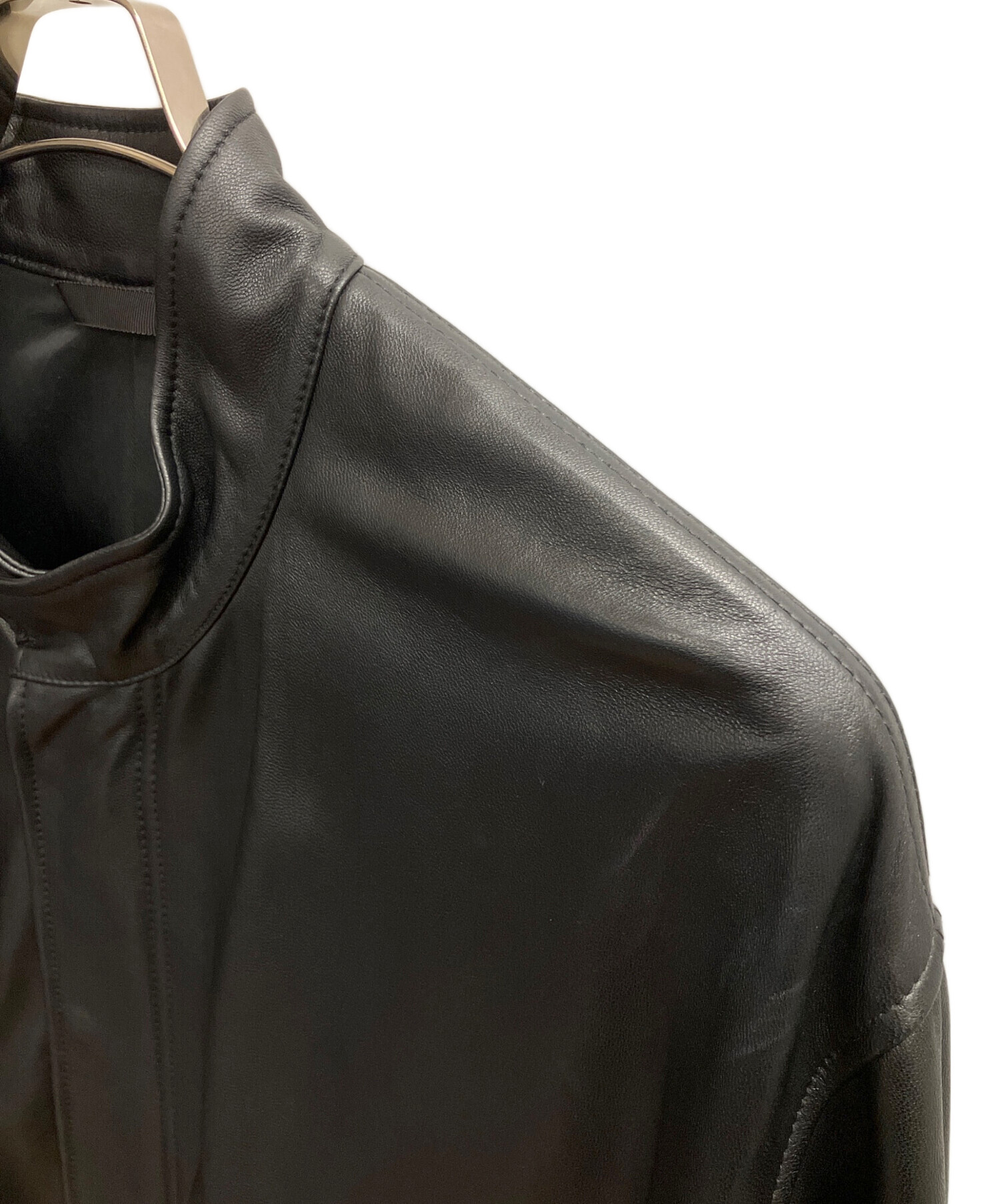 • Adam et Rope(アダム エ ロペ)Adam et Rope (アダム エ ロペ) シープレザービッグシルエットモッズコート ブラック サイズ:SIZE Lの古着・服飾アイテム 右肩正面、軽いヨゴレあり