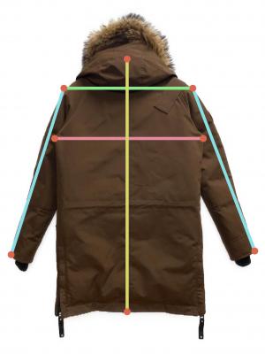 | 素材 | 表地: ポリエステル 83% 綿 17% 裏地: 100% 詰物: ダウン 80% フェザー 20% ファー部分: タヌキ(ロシアンラクーン) 皮革部分: 牛革 |