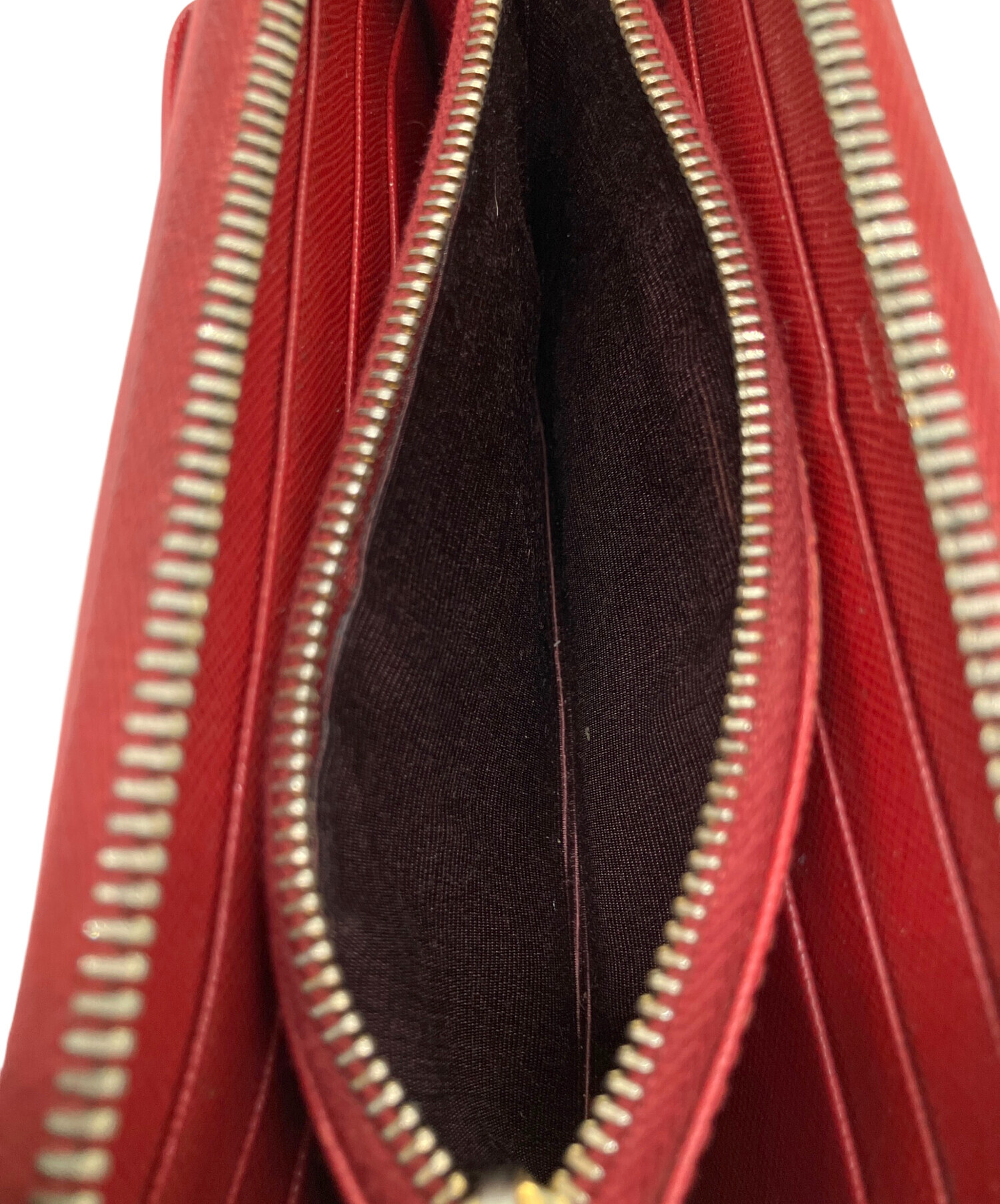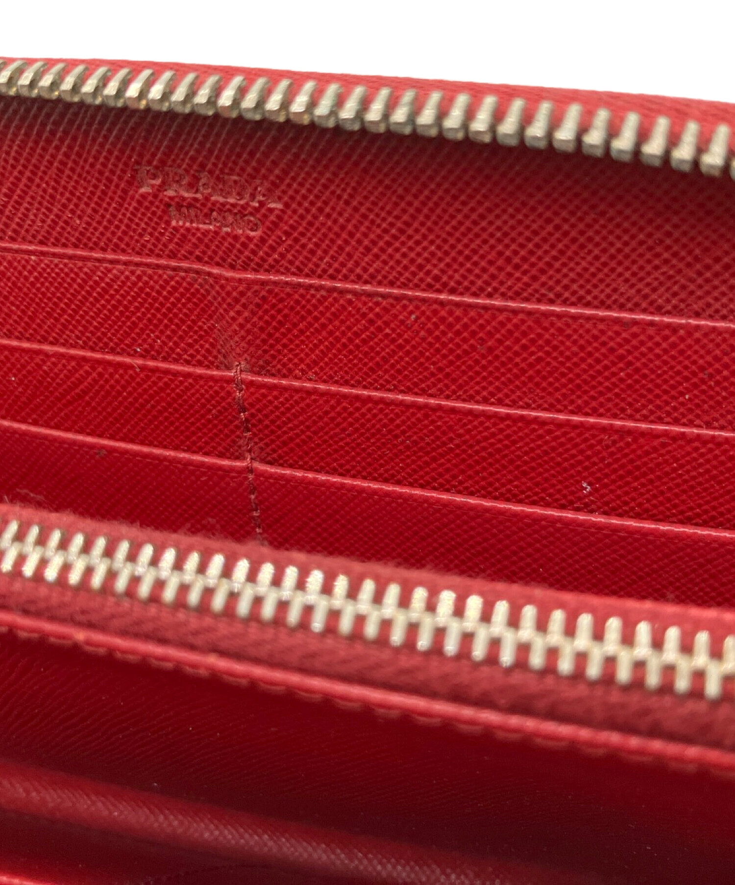 | スタッフコメント | PRADA(プラダ) サフィアーノ ラウンドファスナーウォレット レッド×ゴールド リボン 長財布 |