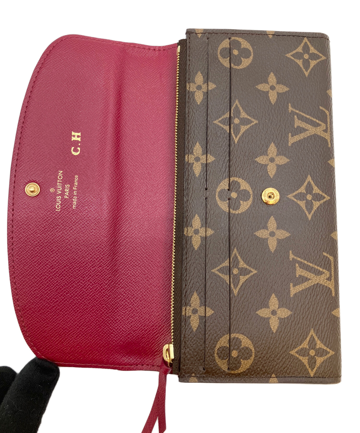• LOUIS VUITTON(ルイ ヴィトン)LOUIS VUITTON (ルイ ヴィトン) モノグラム ポルトフォイユ・エミリー 長財布 ブラウンの古着・服飾アイテム イニシャル刻印あり。かぶせ部裏