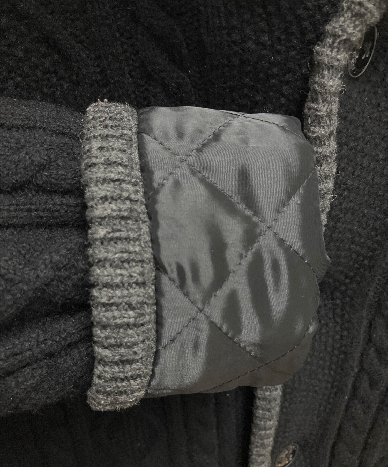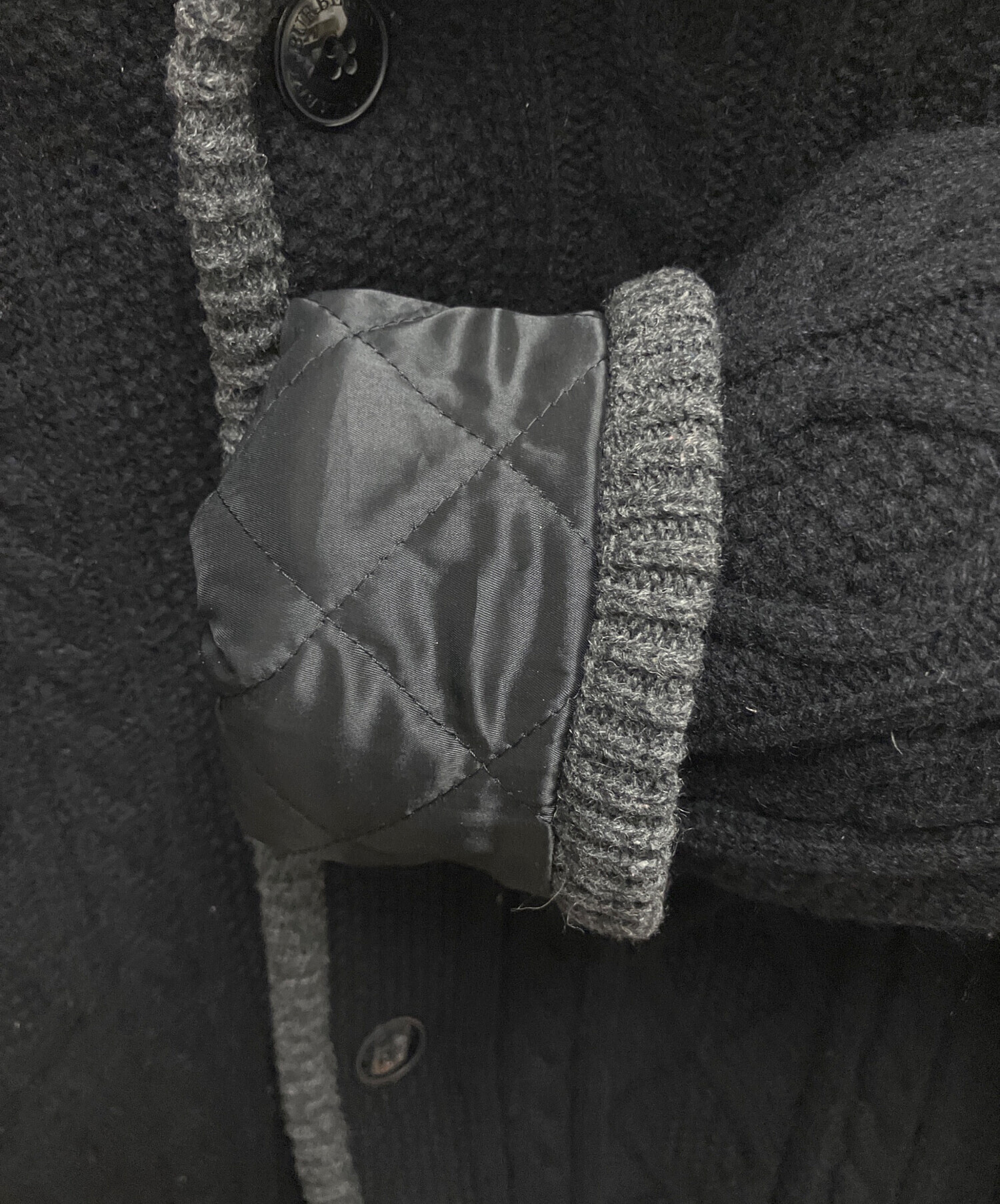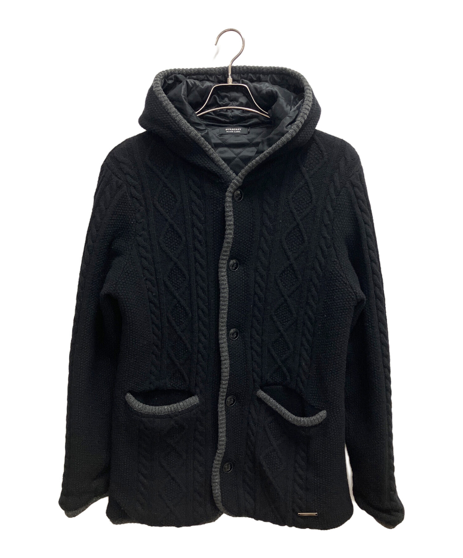 • BURBERRY BLACK LABEL(バーバリーブラックレーベル)BURBERRY BLACK LABEL (バーバリーブラックレーベル) ニットカーディガン ブラック×グレー サイズ:SIZE Lの古着・服飾アイテム 全体的に軽毛羽立ちあり
