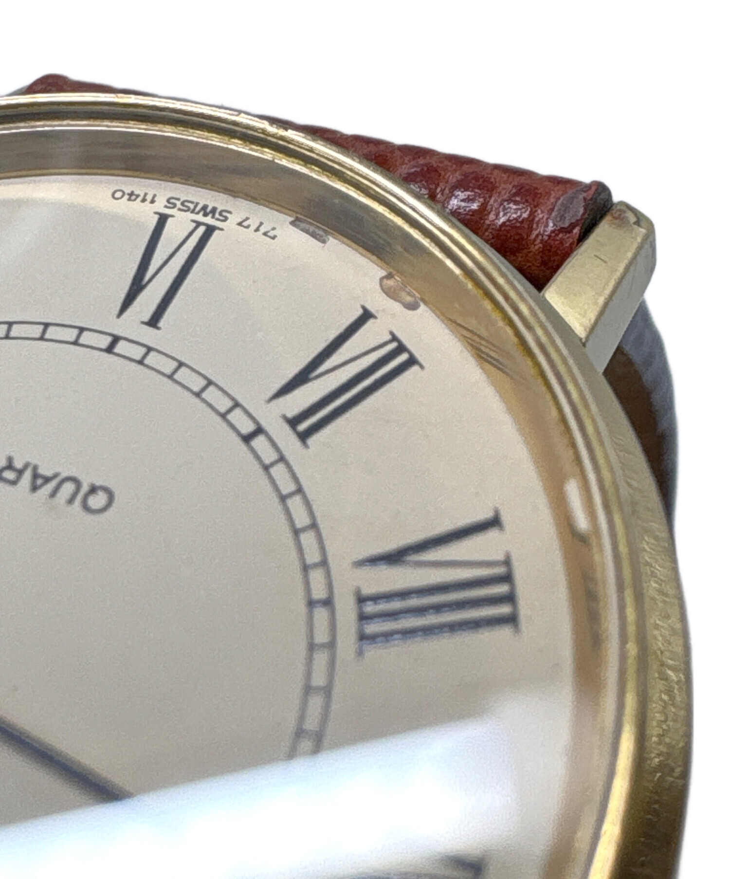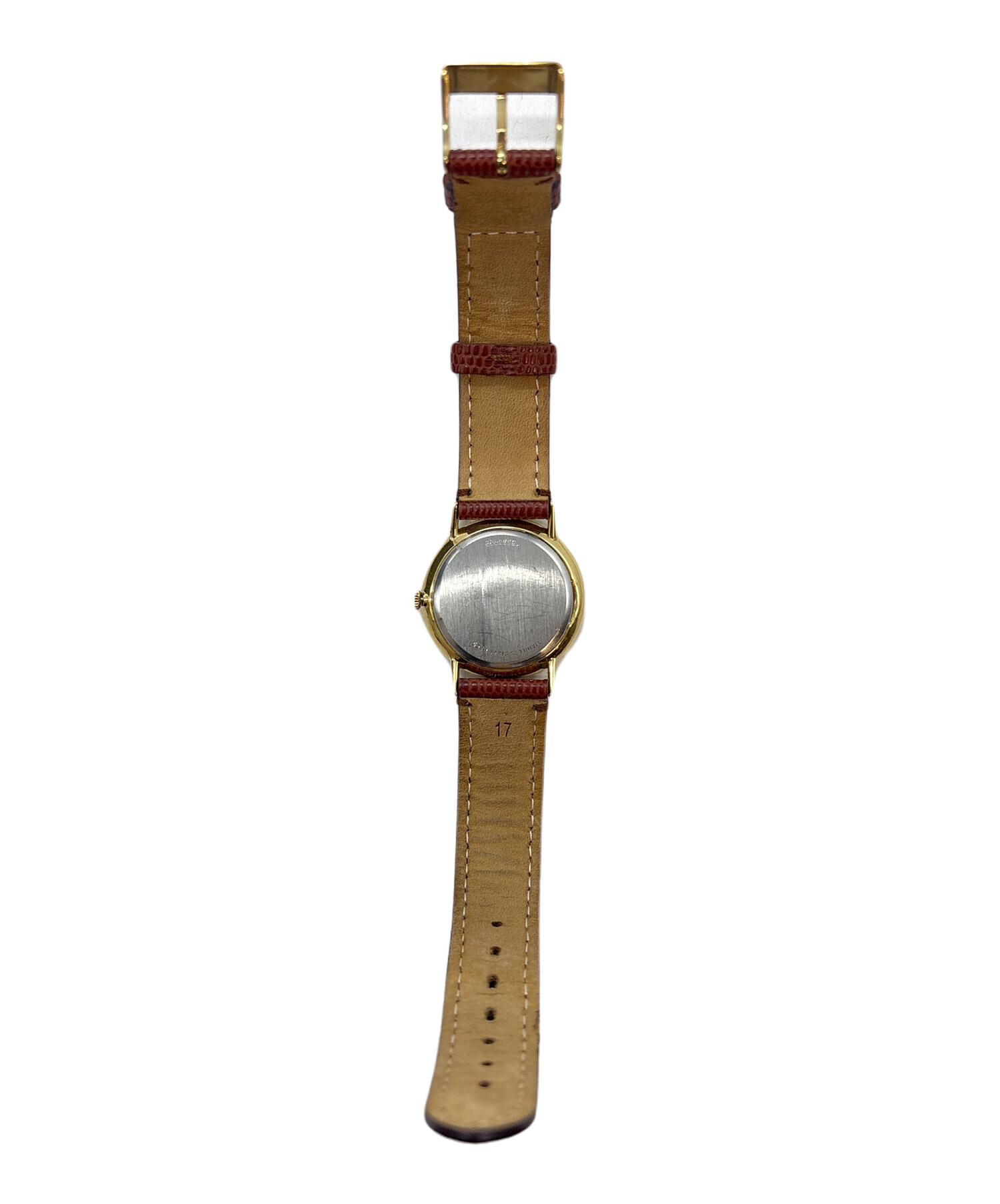 | 状態 | こちらの商品は中古品の為、使用に伴います細かなキズ、汚れがございます。店頭にて展示販売を行っている為、記載に無い細かなキズ、汚れが見受けられる場合がございます。 裏面にキズが見られます。(画像7枚目参照) ベルトに汚れや劣化が見られます。(画像8,9枚目参照) 文字盤の内部に剥がれやスレが見られます。(画像10,11枚目参照) |