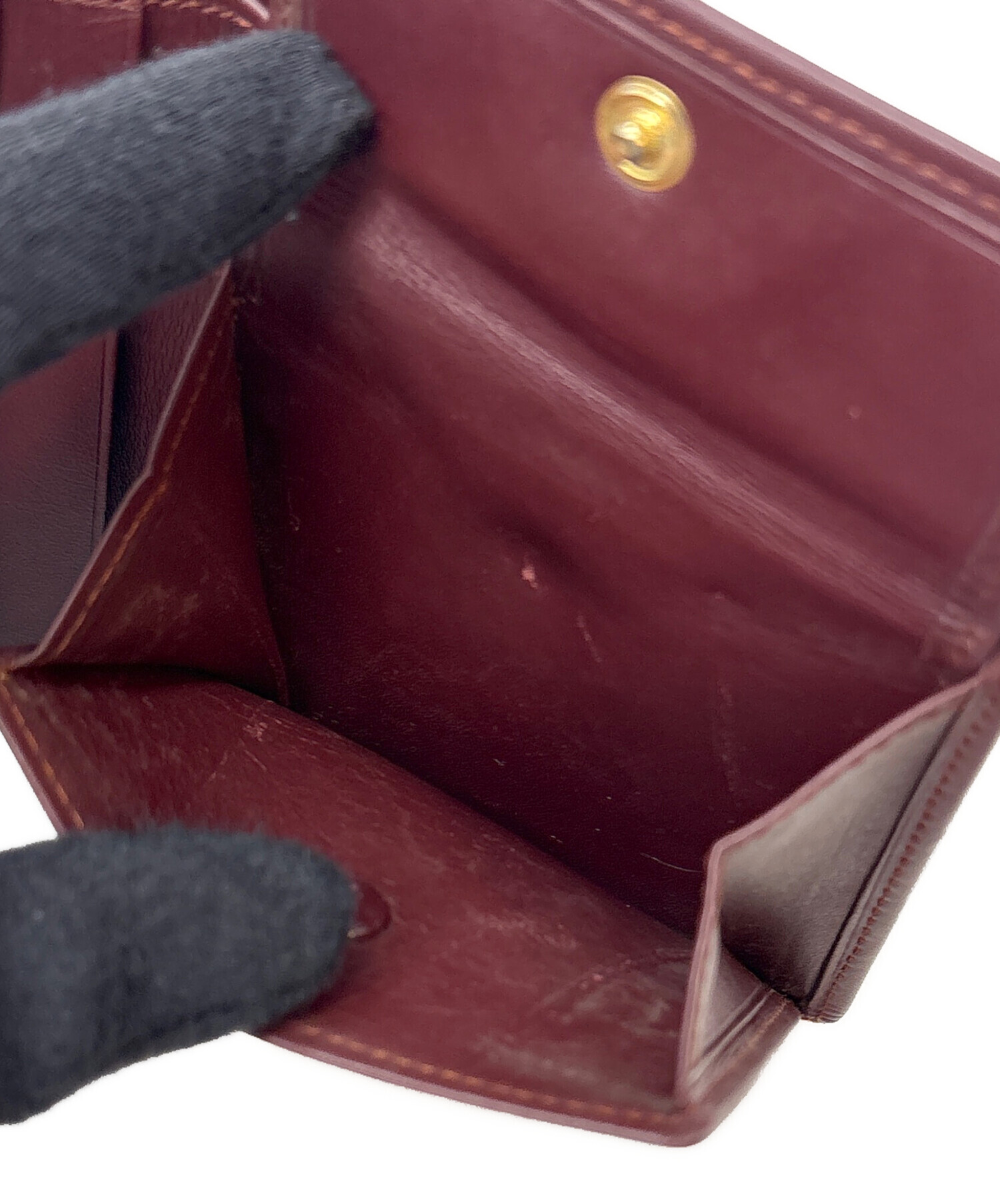 • Cartier(カルティエ)Cartier (カルティエ) 2つ折り財布/マストライン ボルドーの古着・服飾アイテム キズ・ヨゴレ有