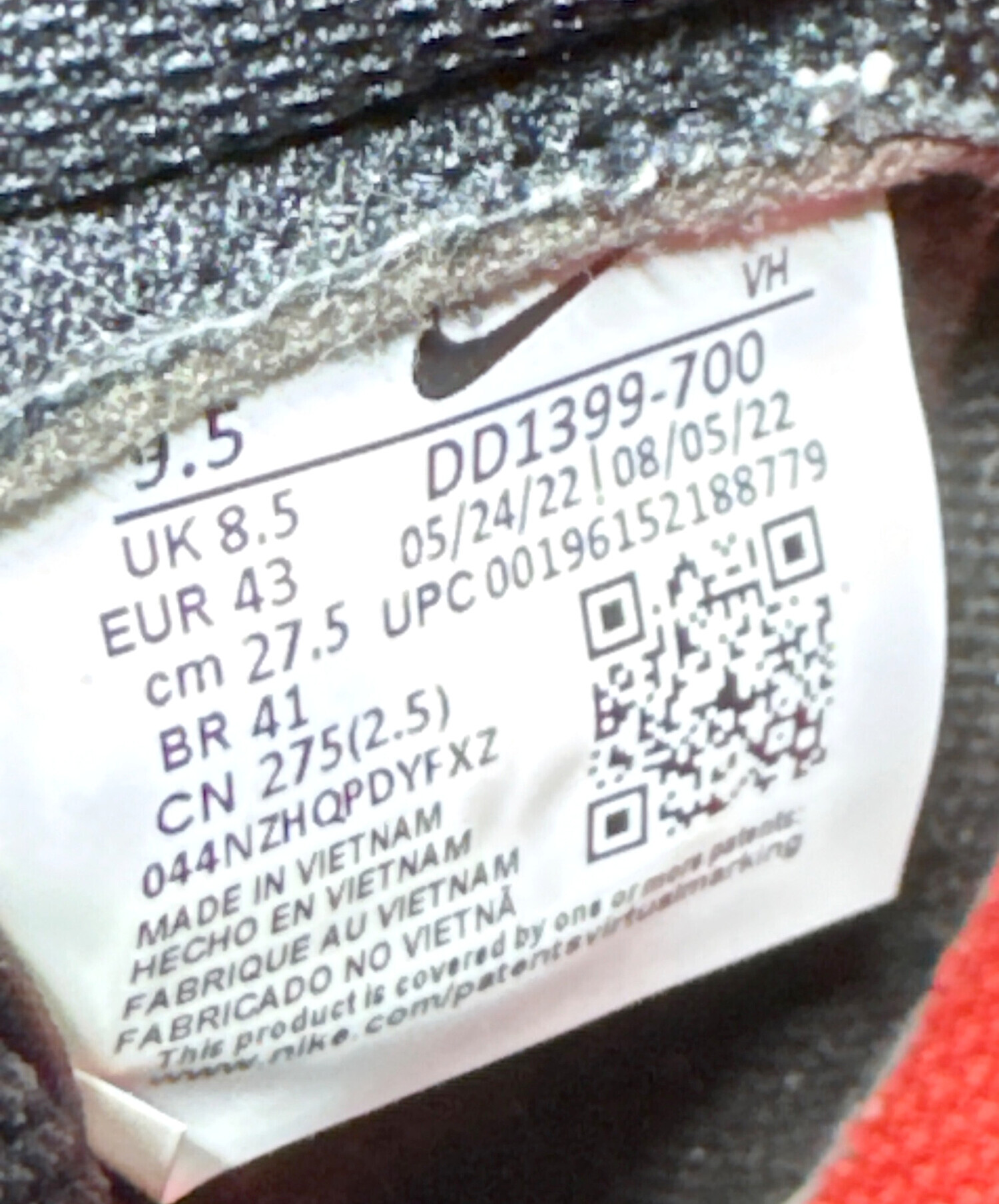 タグ表記サイズ:US 9.5( 参考サイズ:27.5cm )