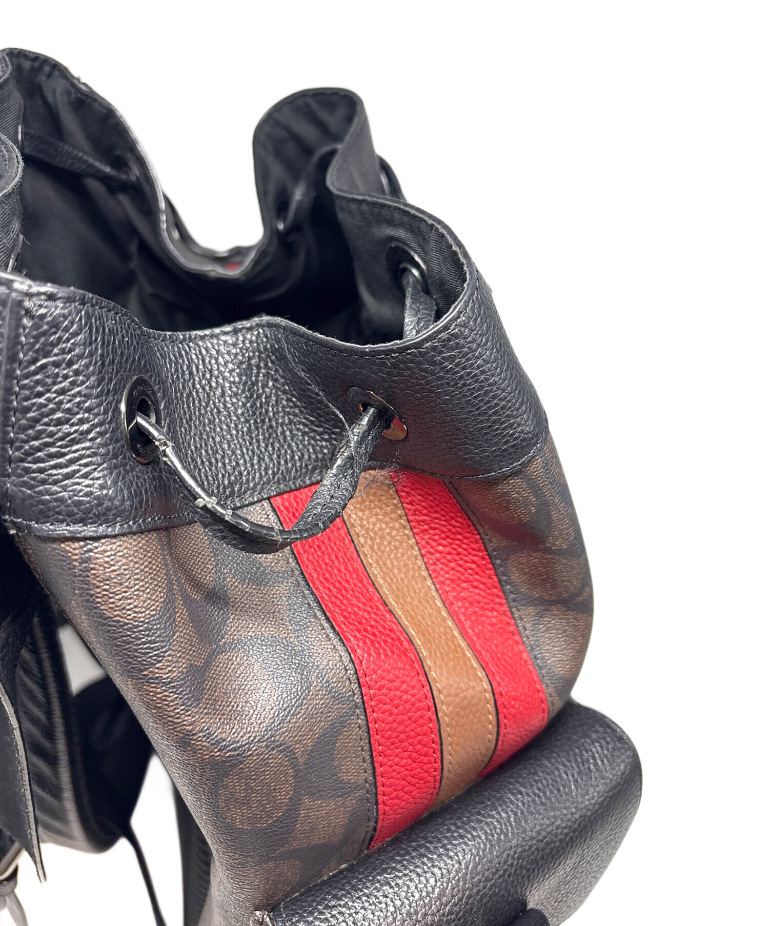 • COACH(コーチ)COACH (コーチ) リュック ブラック×ブラウンの古着・服飾アイテム ホツレ有