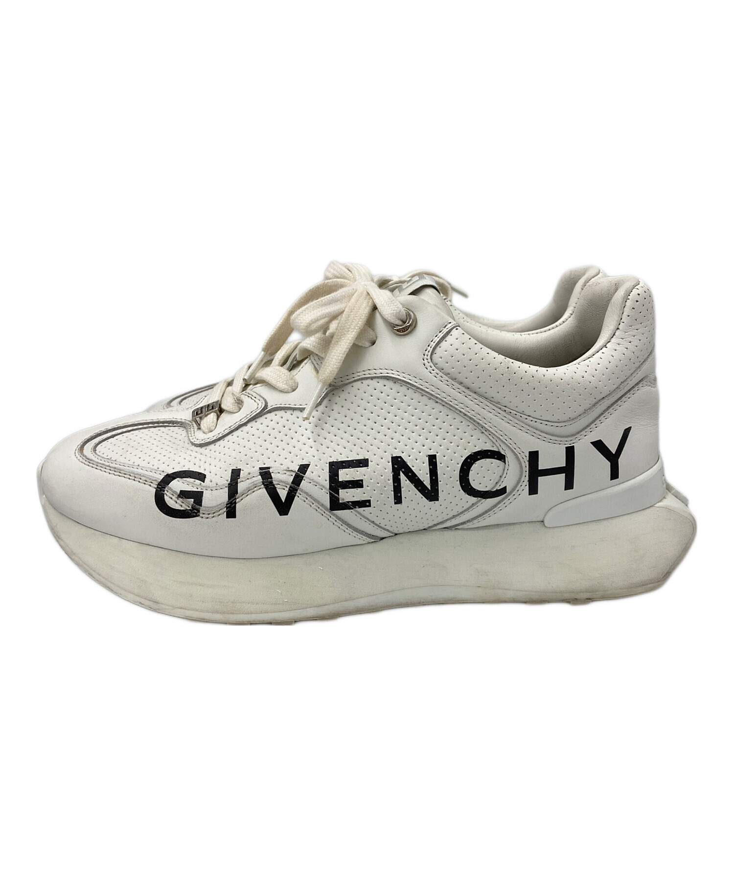 • GIVENCHY(ジバンシィ)GIVENCHY (ジバンシィ) パンチングレザーGIVランナー ホワイト×ブラック サイズ:40の古着・服飾アイテム ソールスレ穴有