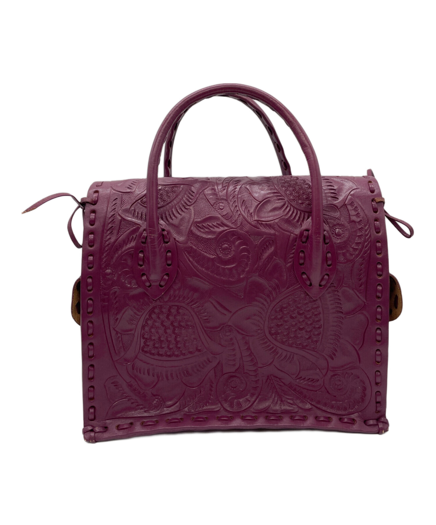 • Carving Tribes(カービングトライブス)Carving Tribes (カービングトライブス) レザーハンドバッグ パープルの古着・服飾アイテム 保存汚れ有