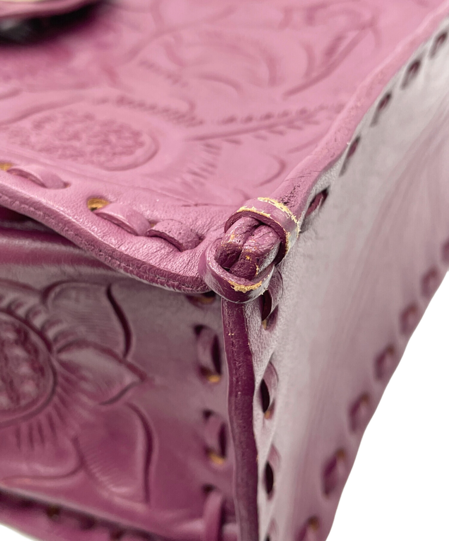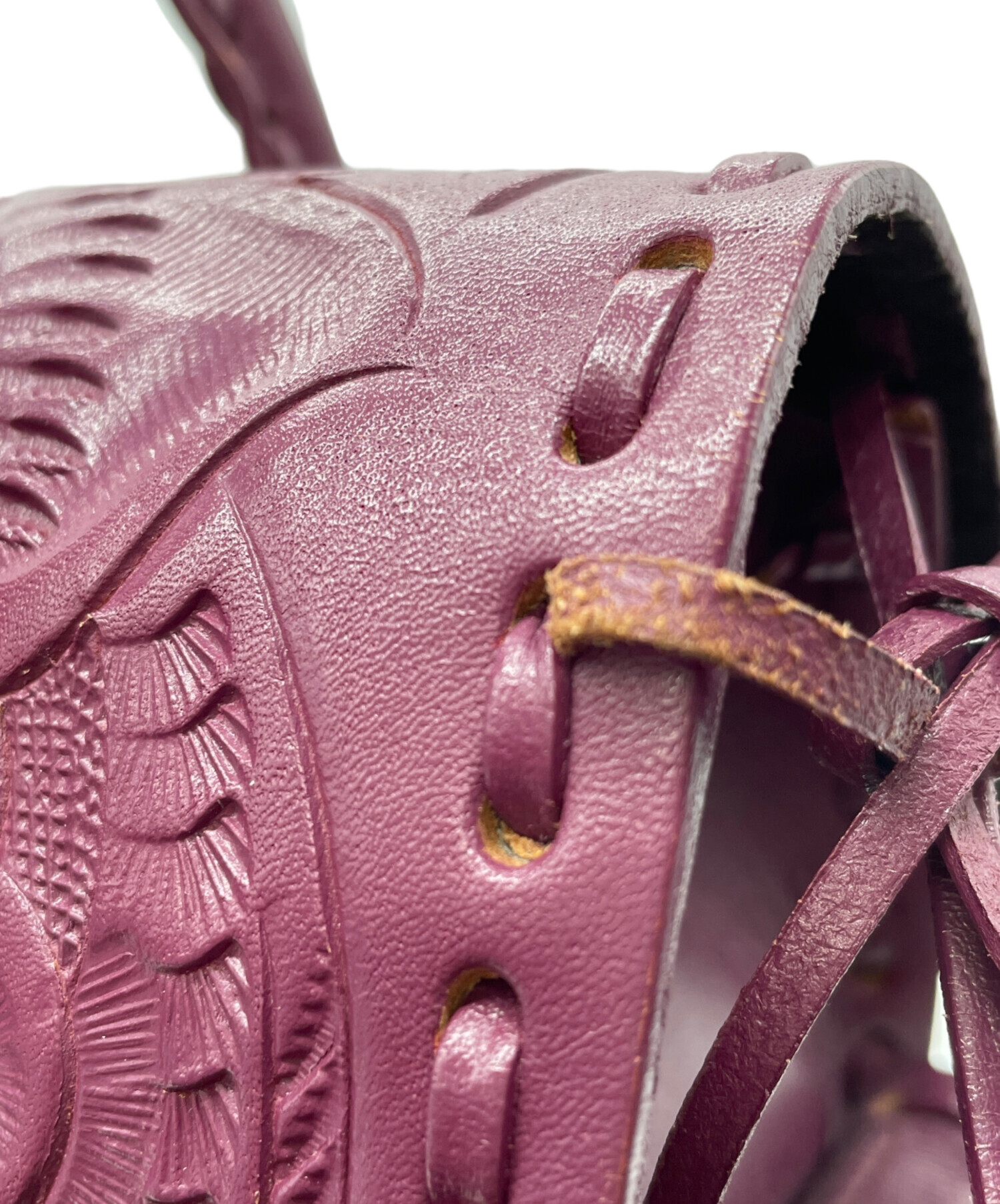• Carving Tribes(カービングトライブス)Carving Tribes (カービングトライブス) レザーハンドバッグ パープルの古着・服飾アイテム ハンドルスレ、シワ、使用感有