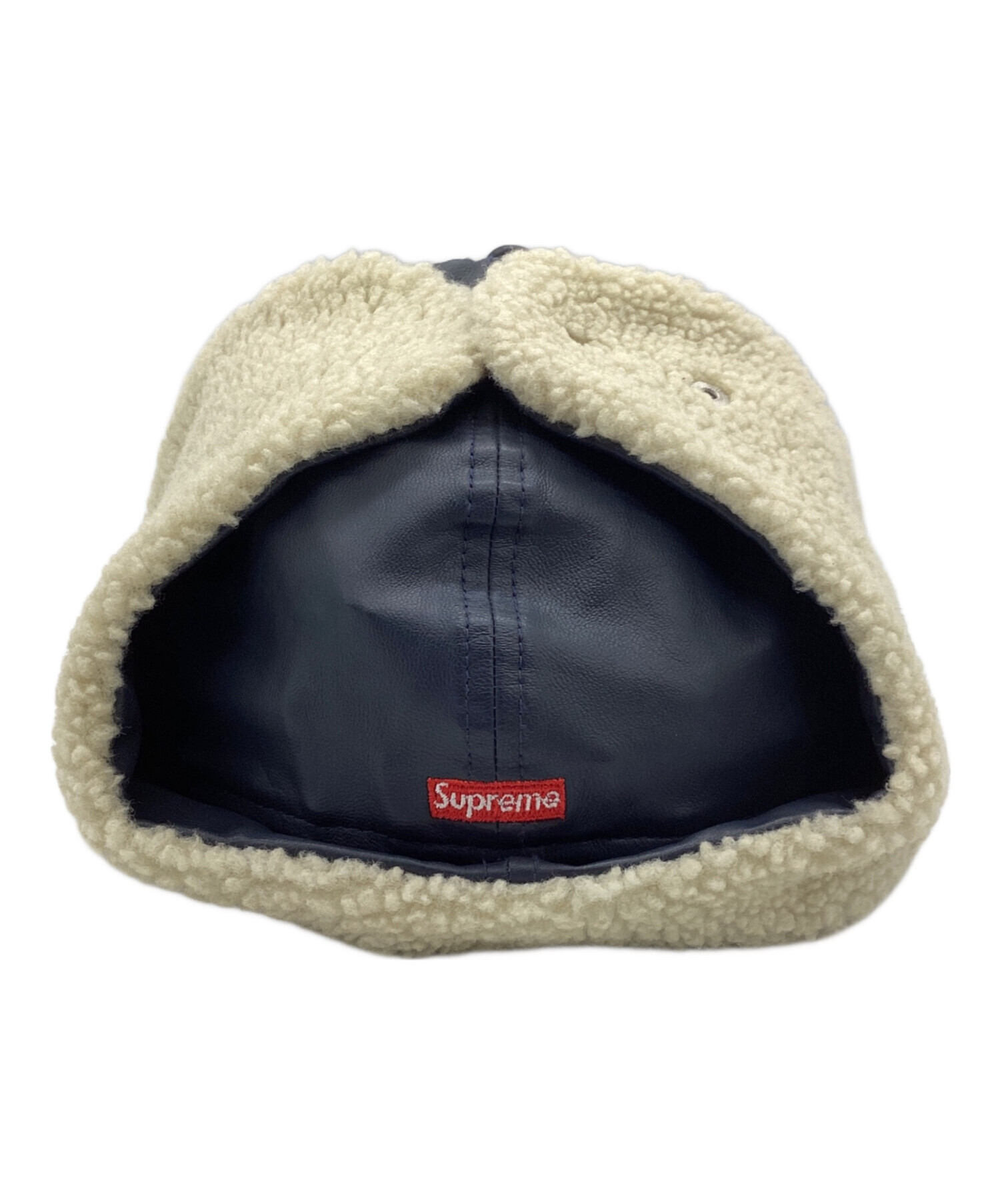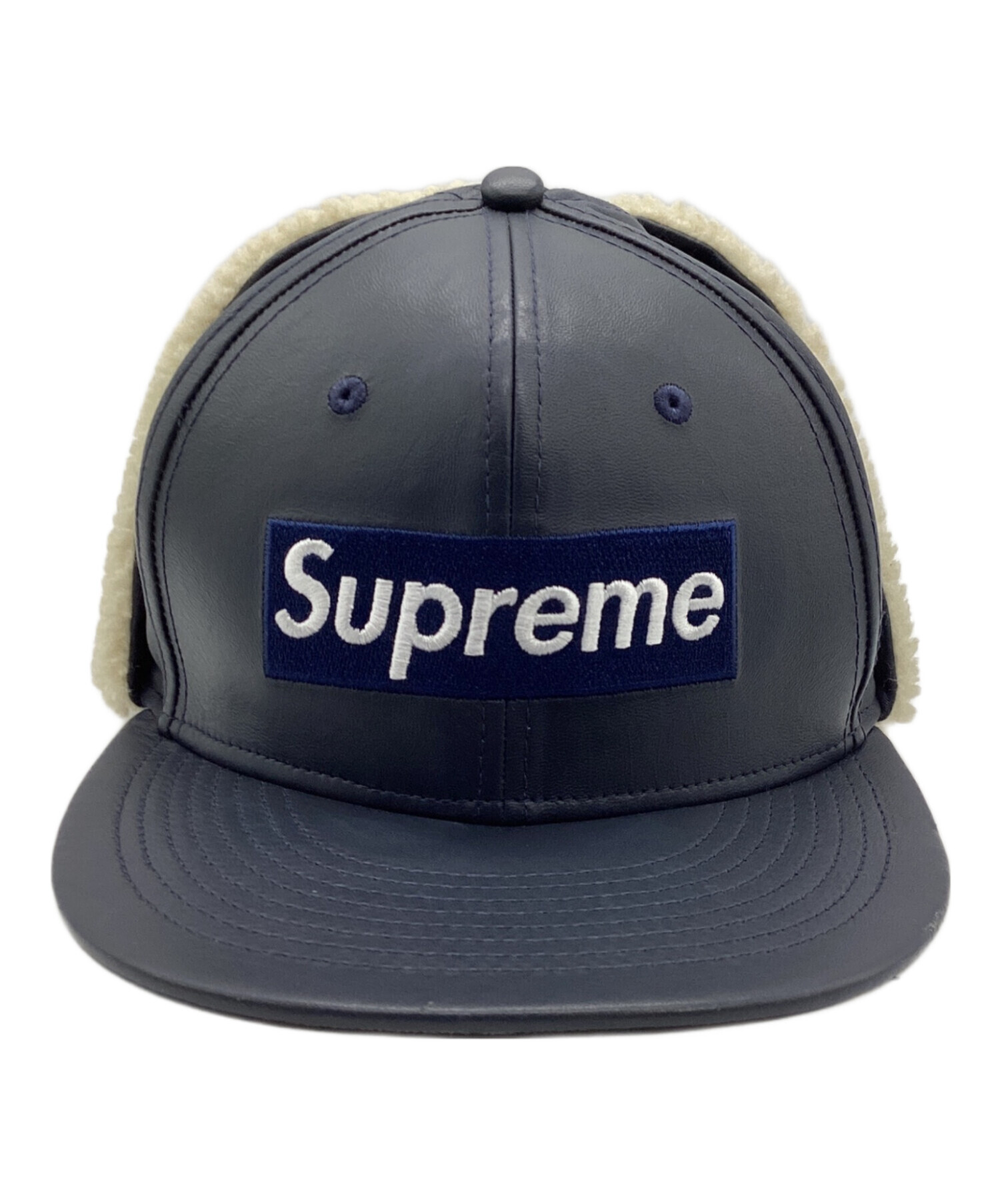 • SUPREME(シュプリーム)SUPREME (シュプリーム) New Era (ニューエラ) Leather Earflap Box Logo New Era ネイビー サイズ:59.6cmの古着・服飾アイテム 内部ヨゴレ有