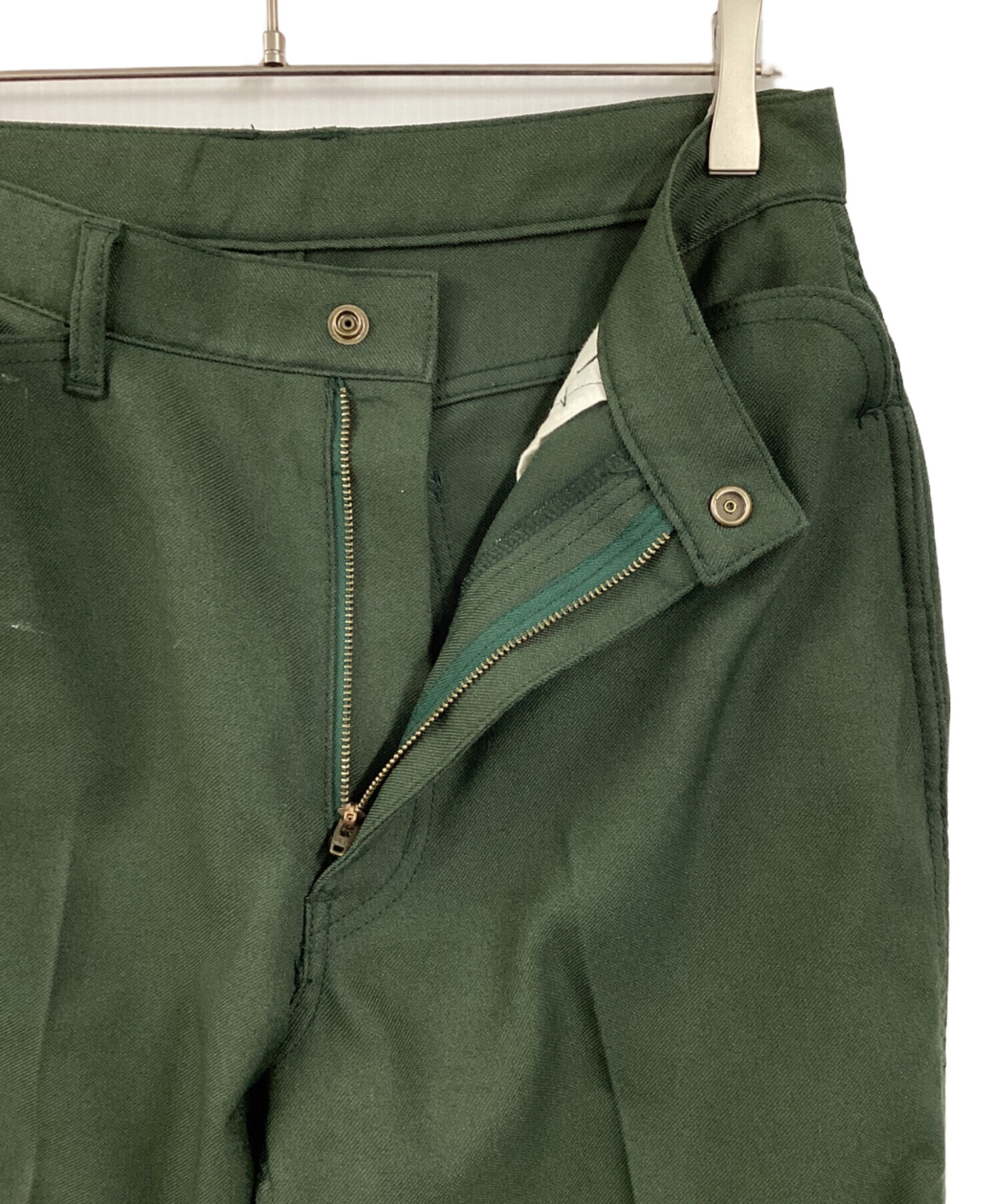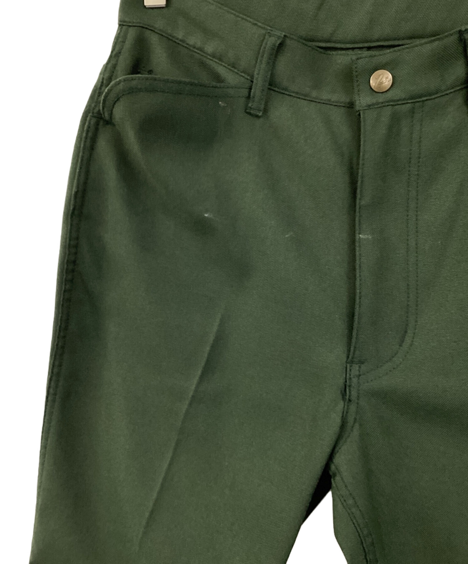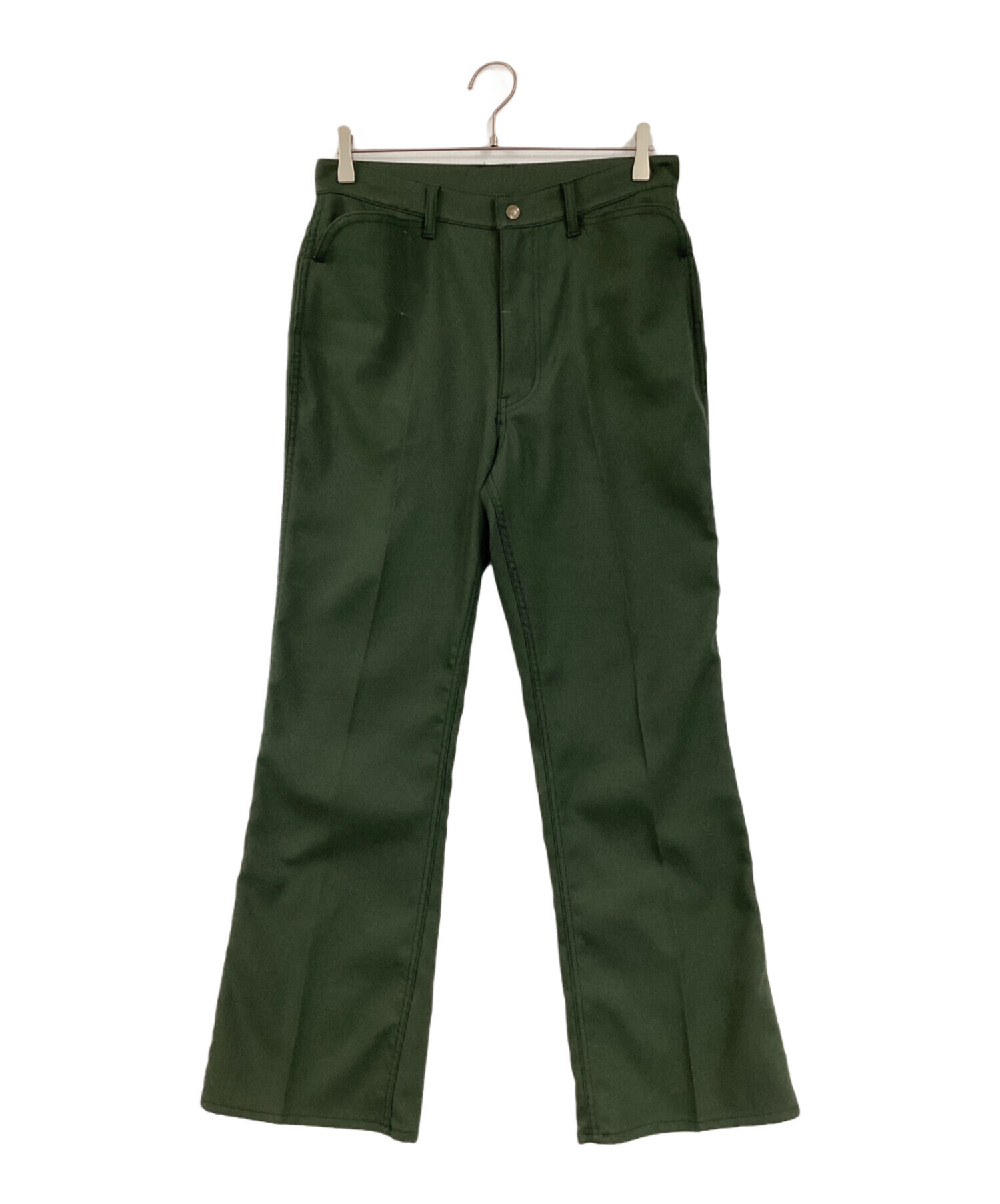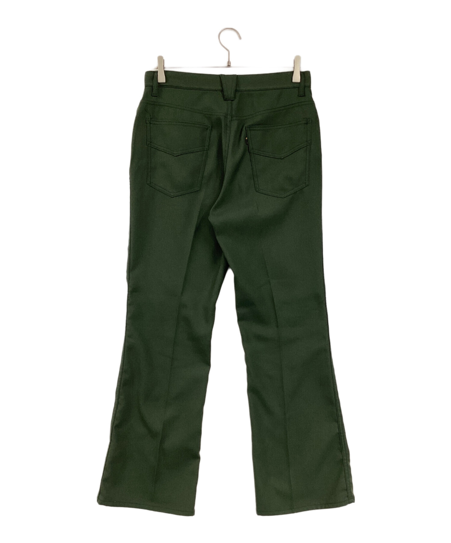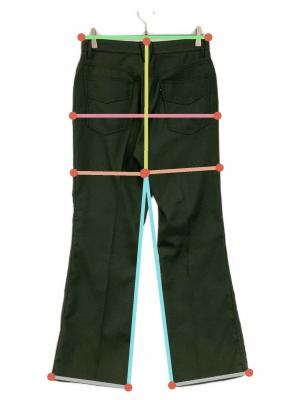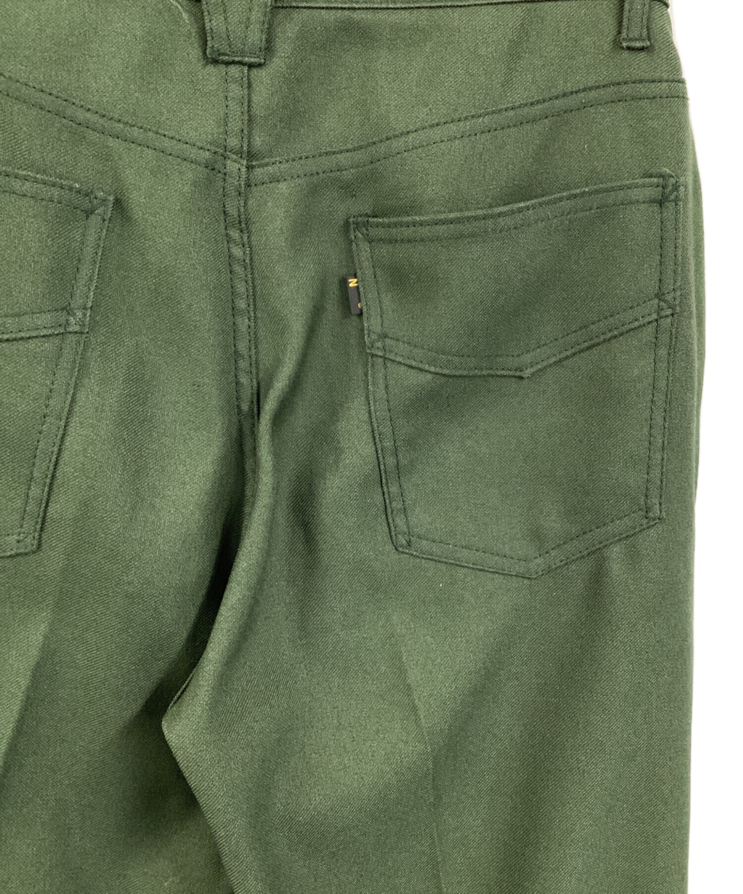 | スタッフコメント | 湾曲になっているポケットが印象的で、単色のグリーンの配色が高級感を出しています。後ろポケットにあるワンポイントのタグが良いアクセントになっているフレアパンツです。 |