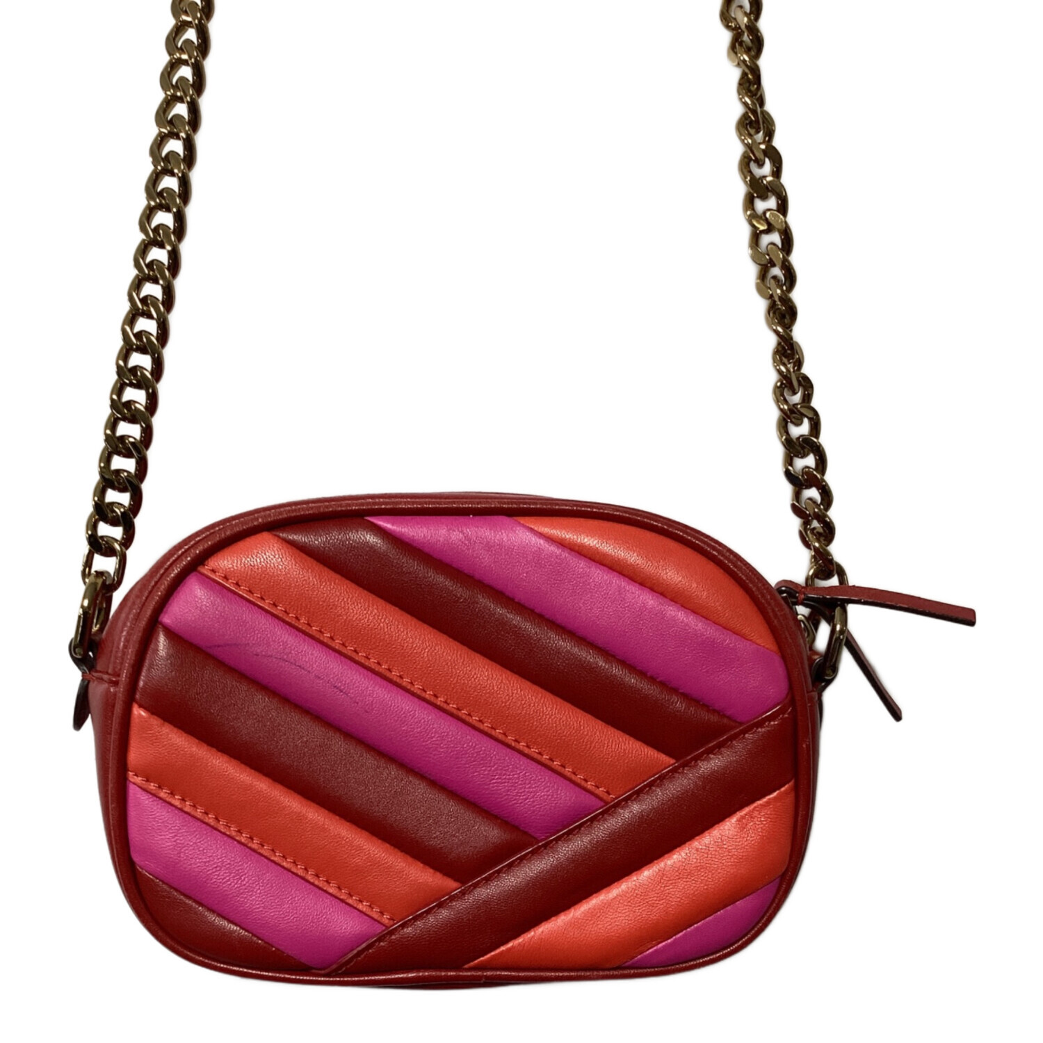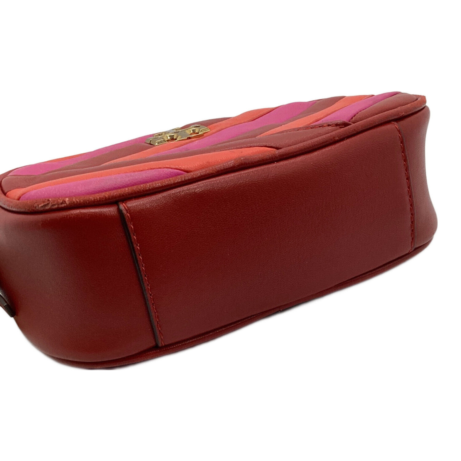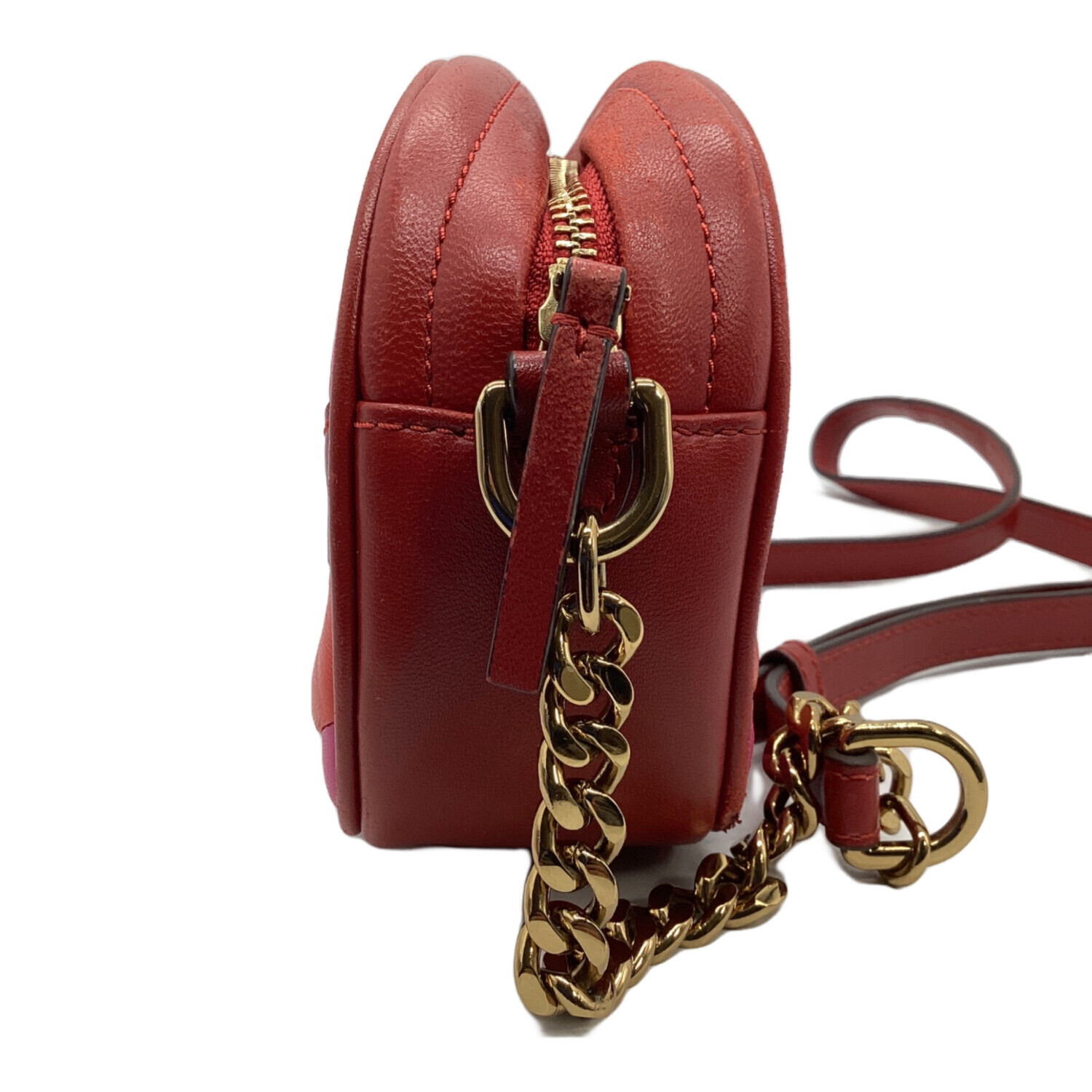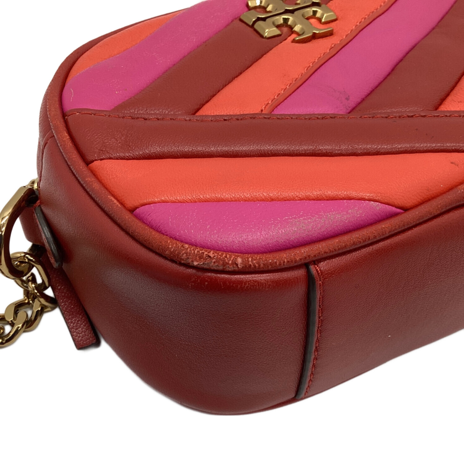 • TORY BURCH(トリーバーチ)TORY BURCH (トリーバーチ) キラシェブロンカメラバッグ レッド×ピンクの古着・服飾アイテム ヨゴレ、コバスレ有有