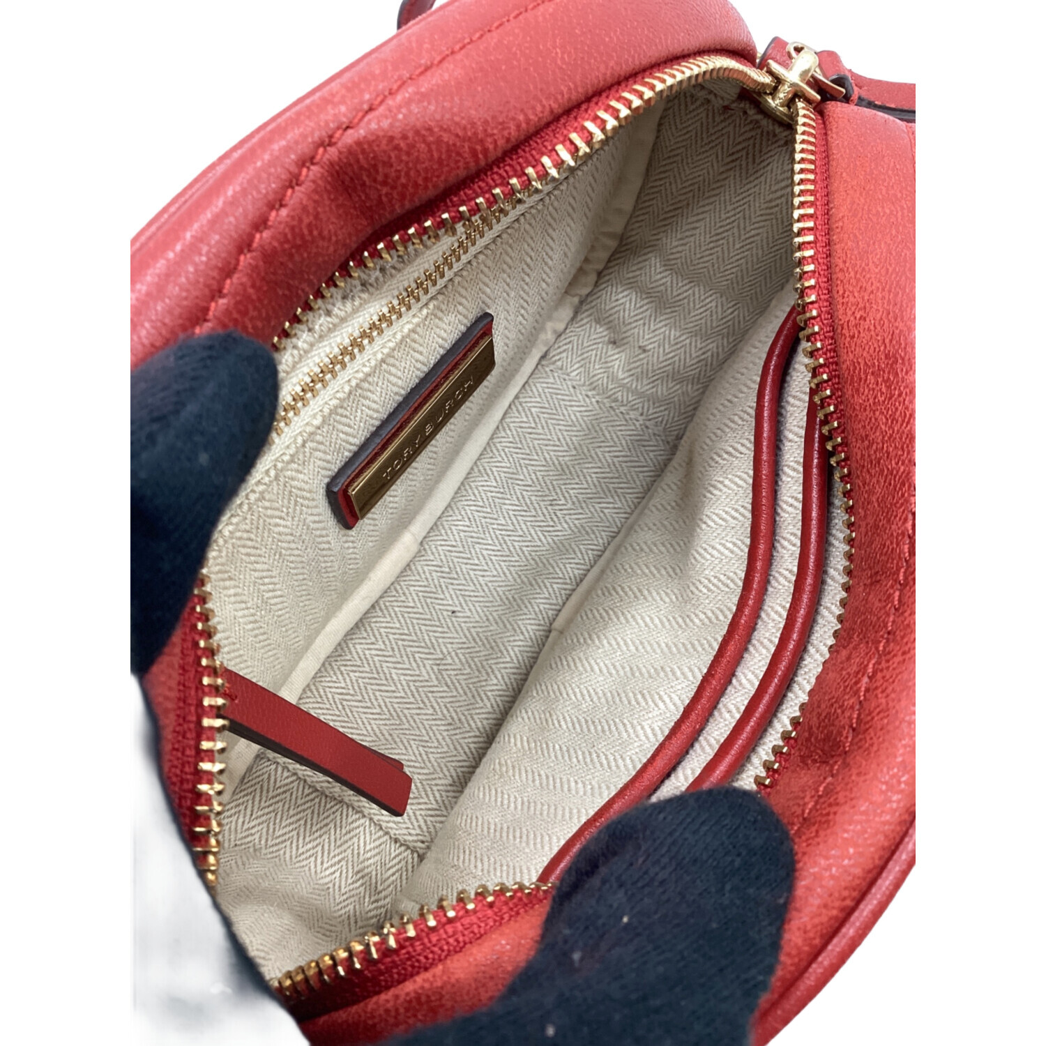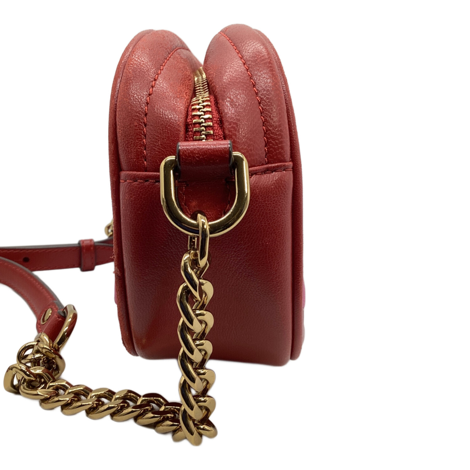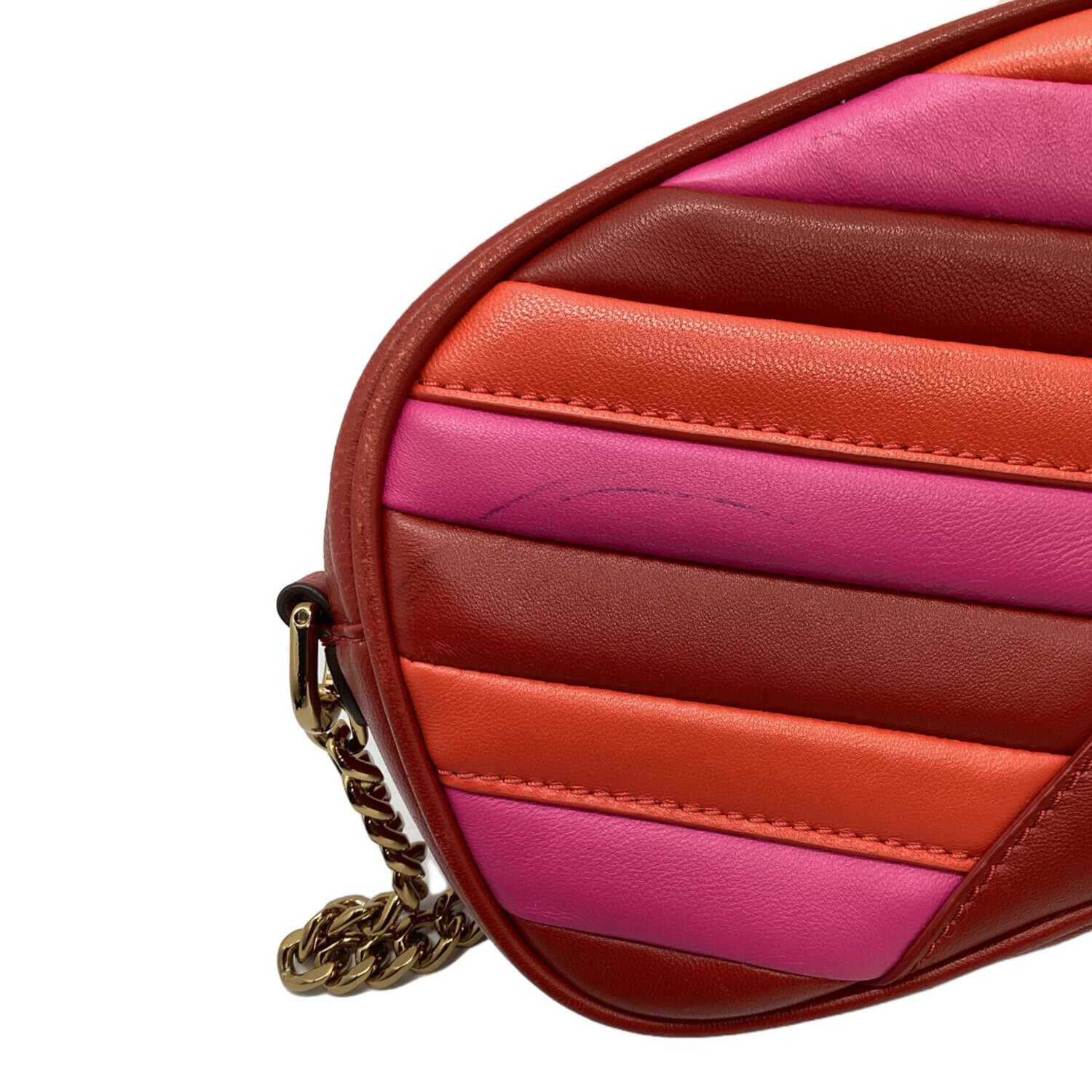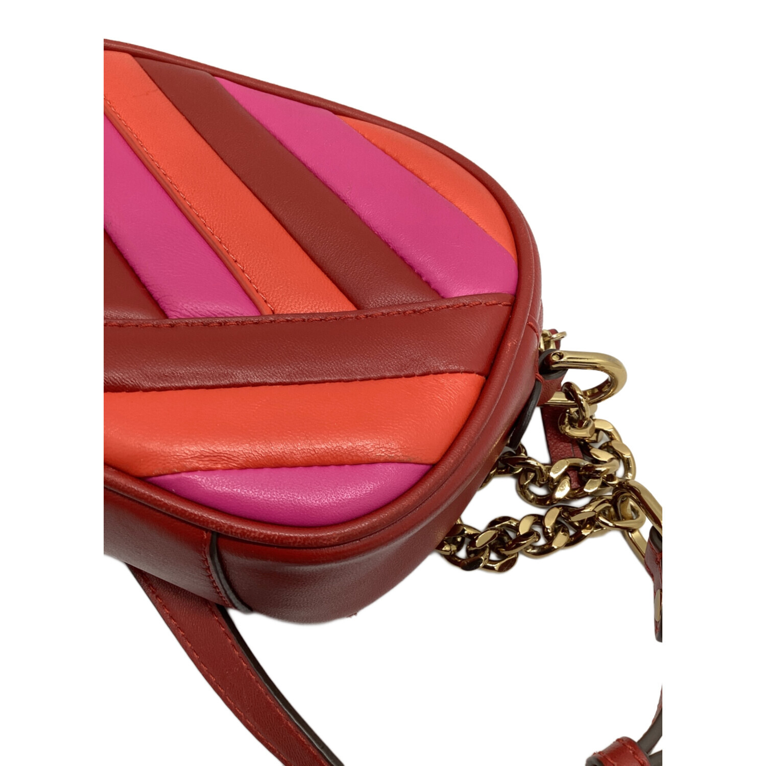 • TORY BURCH(トリーバーチ)TORY BURCH (トリーバーチ) キラシェブロンカメラバッグ レッド×ピンクの古着・服飾アイテム ヨゴレ、コバスレ有有