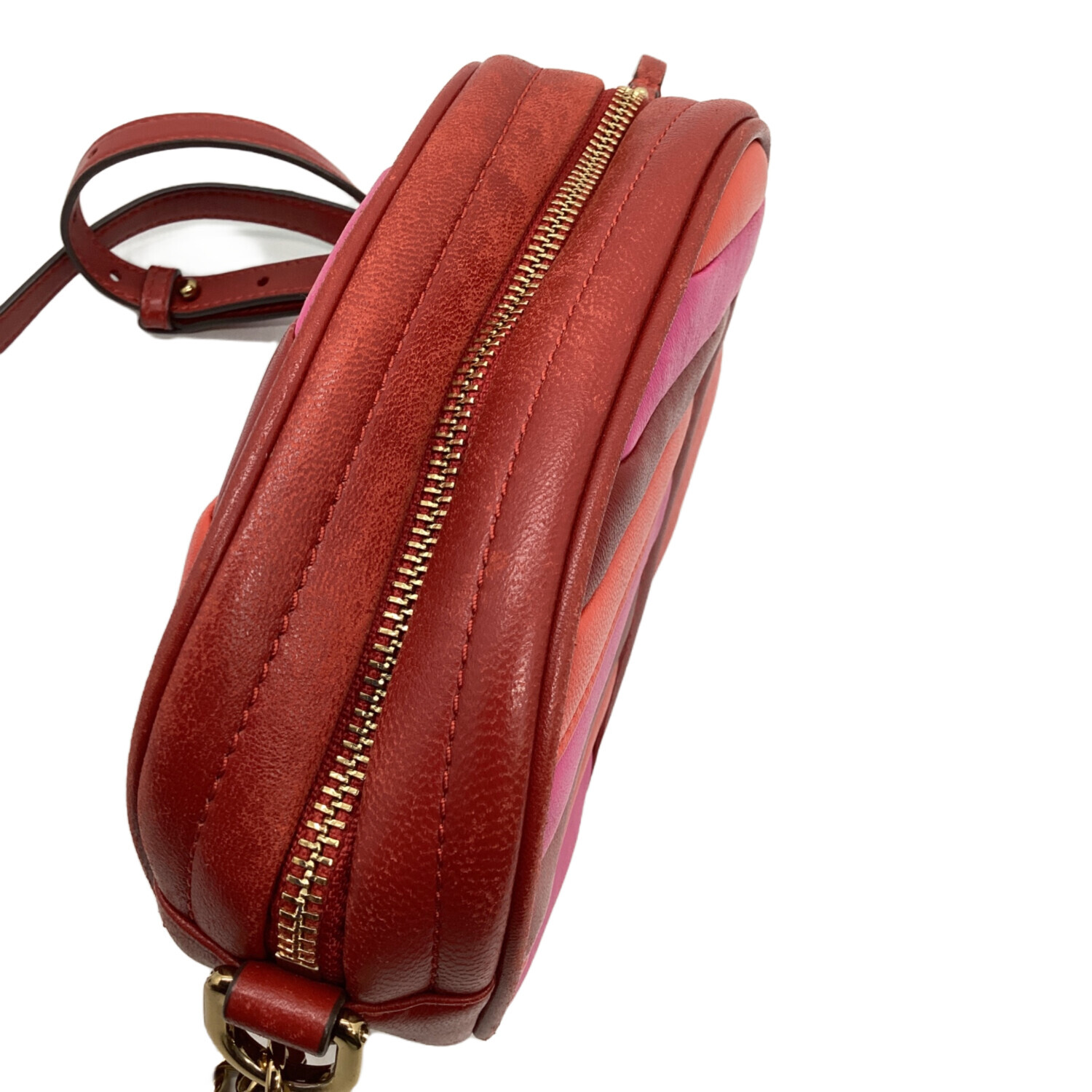 • TORY BURCH(トリーバーチ)TORY BURCH (トリーバーチ) キラシェブロンカメラバッグ レッド×ピンクの古着・服飾アイテム ヨゴレ、コバスレ有