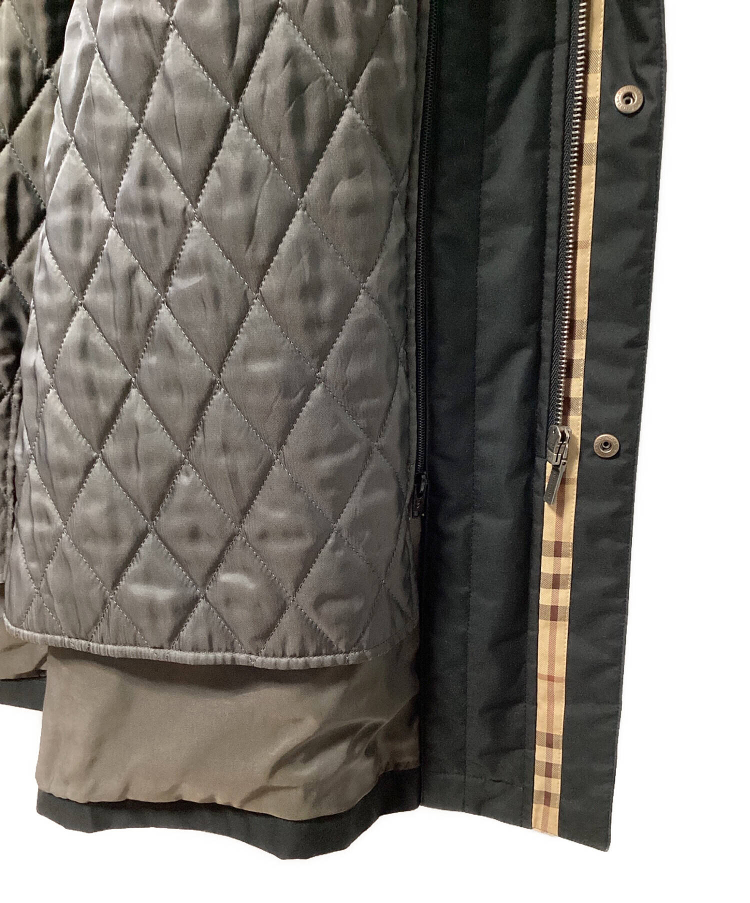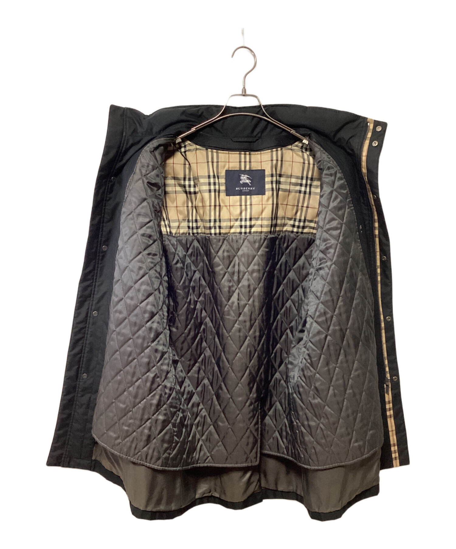 • BURBERRY LONDON(バーバリーロンドン)BURBERRY LONDON (バーバリーロンドン) スタンドカラーコート ブラック サイズ:LLの古着・服飾アイテム 袖裏ヨゴレ/ヤブレ有