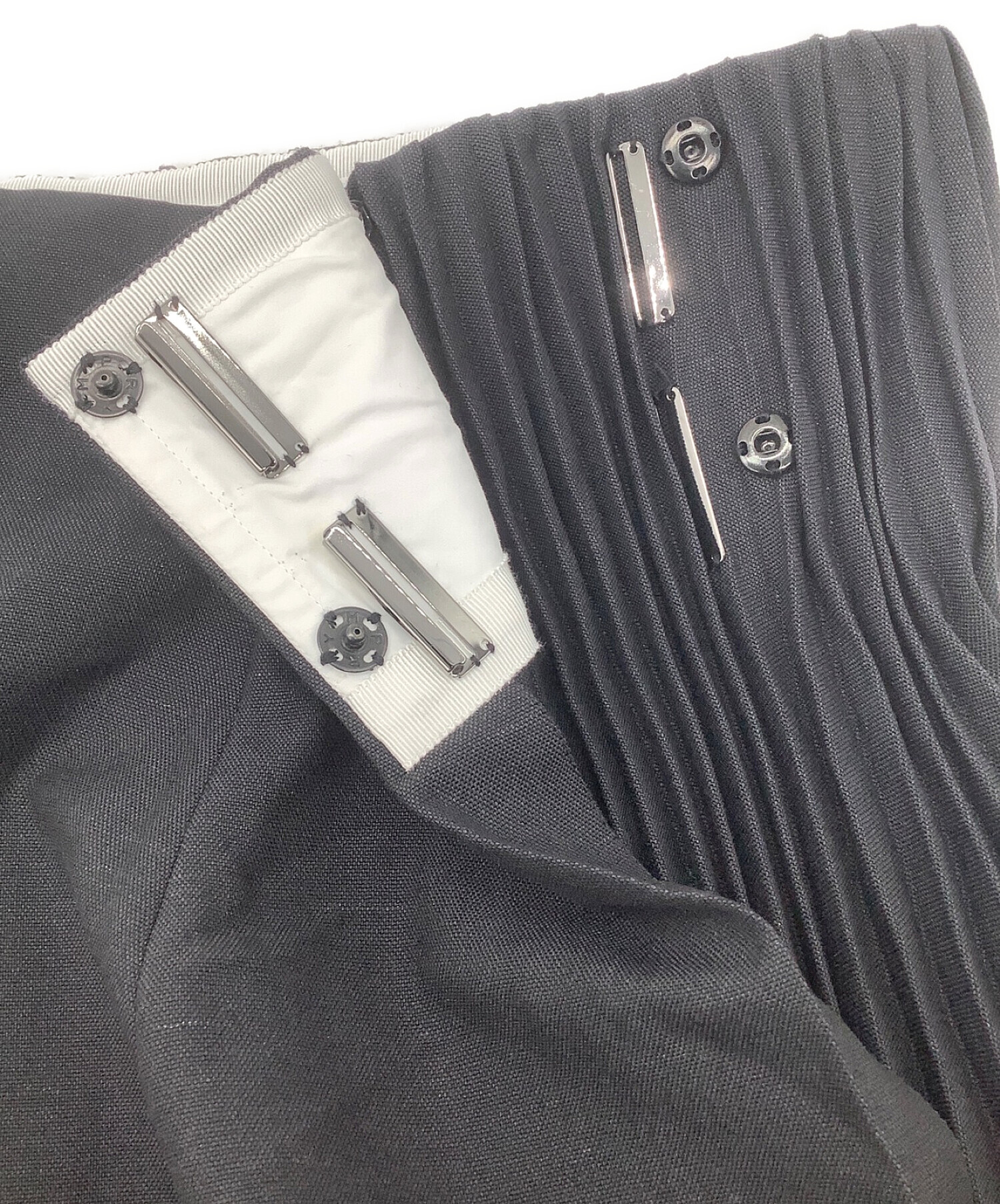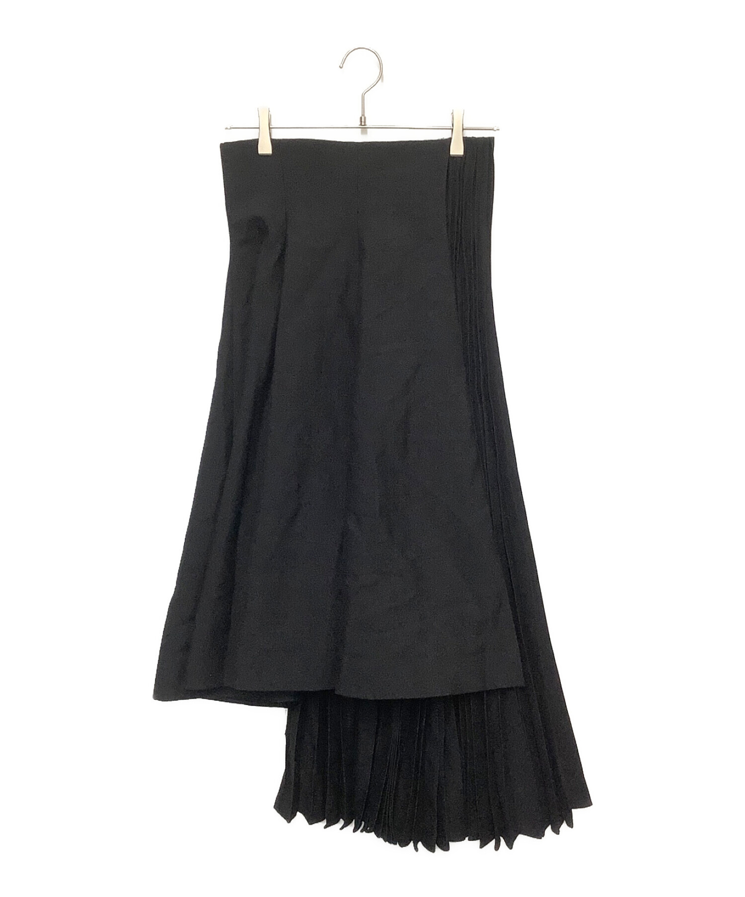 | スタッフコメント | アシンメトリーなデザインで表面が太めのプリーツと裏面が細めのプリーツになっております。 ウエスト部分が引き締まっているので、スタイルアップの効果も期待できます。 |