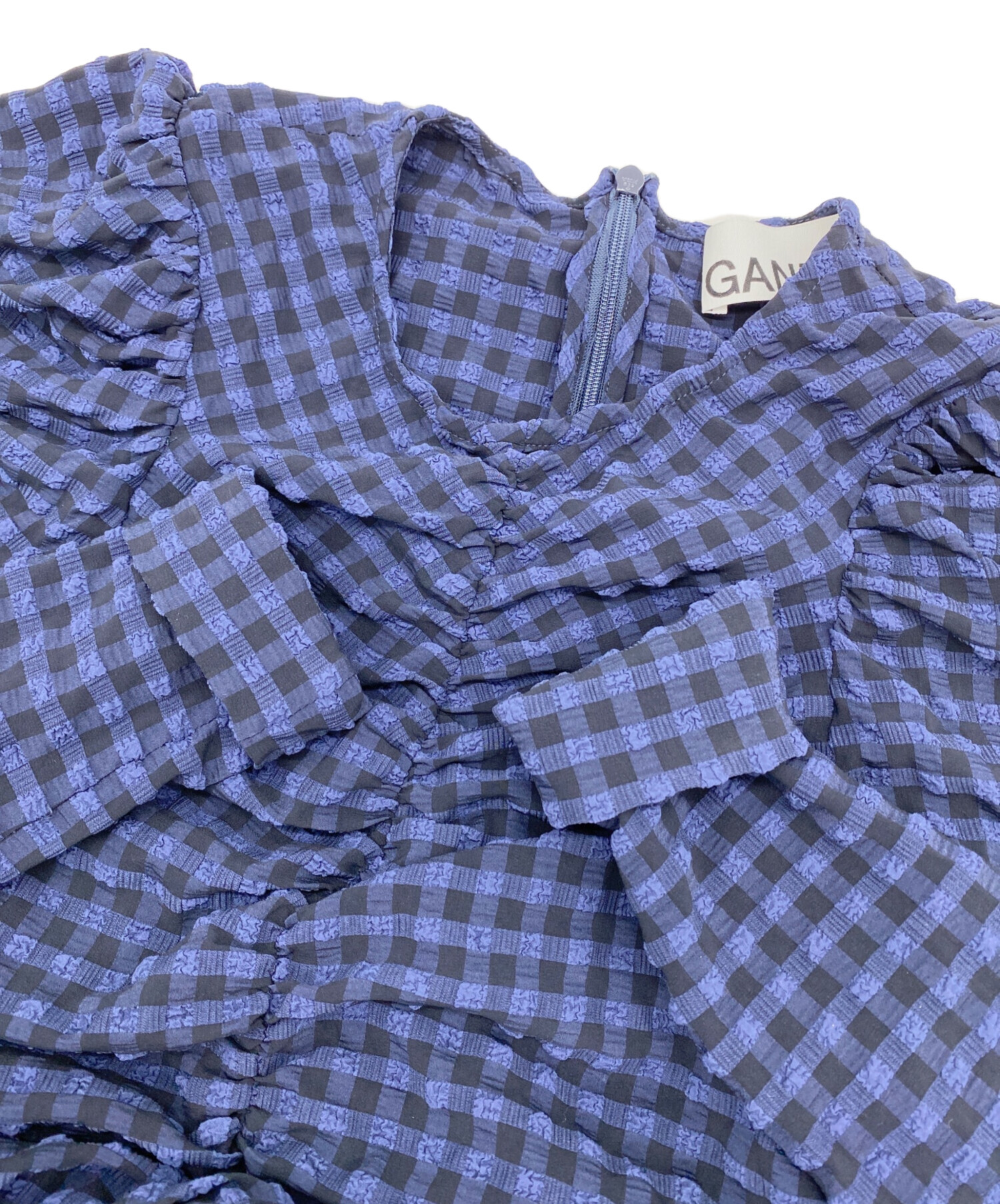 | アイテム名 | ルーシュ・ギンガム・シアサッカー・ミニドレス |