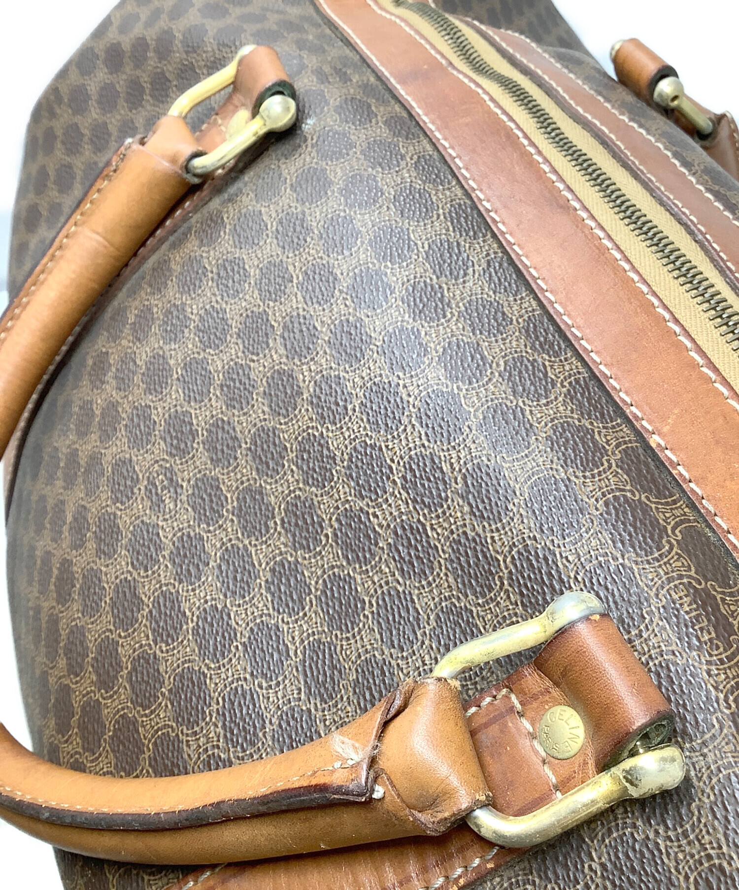 • CELINE(セリーヌ)CELINE (セリーヌ) ボストンバッグ CELINE(セリーヌ) マカダム ブラウンの古着・服飾アイテム 内部ファスナーポケット 汚れあり