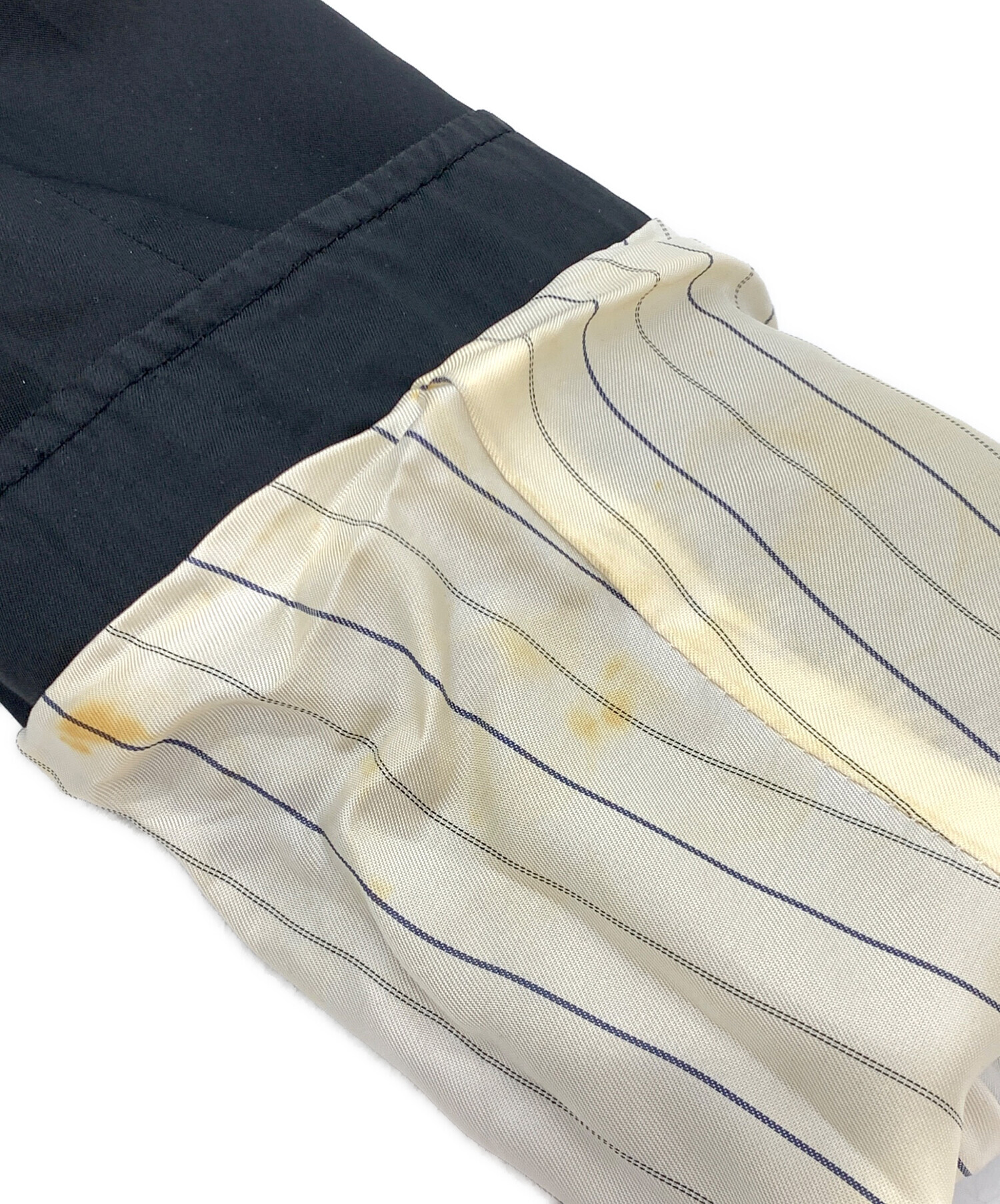 目立つシミや汚れ、におい等がある場合は商品画像や説明文にて極力表記させていただいておりますが、中古品という商品の特性上、全ての瑕疵や不備、洋服直し箇所を撮影・記載をすることは難しくなっております。また、ほとんどのアイテムは店頭と併売しておりますため、出品掲載時からコンディションが変動している場合もございます。あらかじめご了承くださいませ。