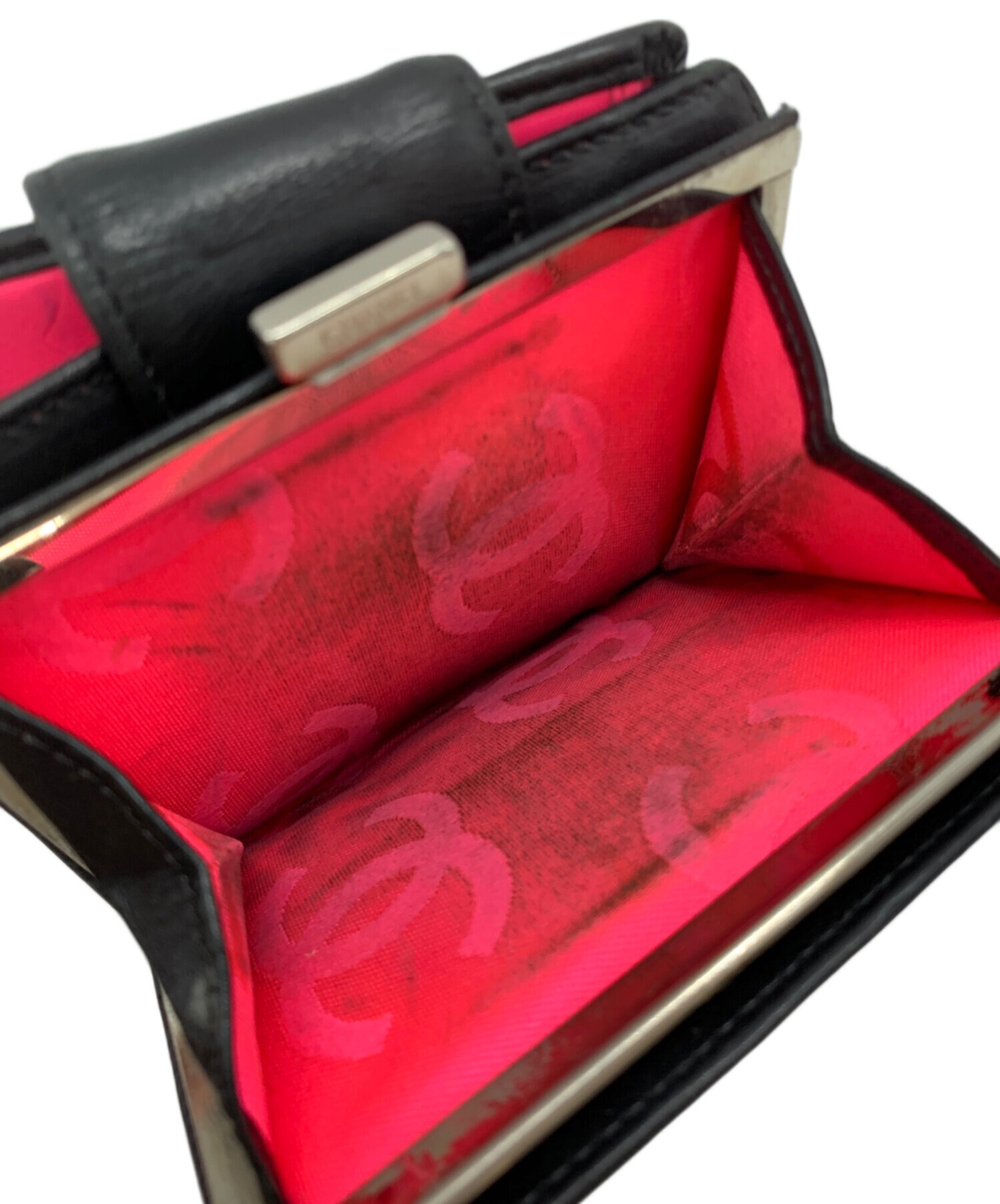 • CHANEL(シャネル)CHANEL (シャネル) 2つ折り財布 ブラック×ピンクの古着・服飾アイテム 汚れ、使用感がございます