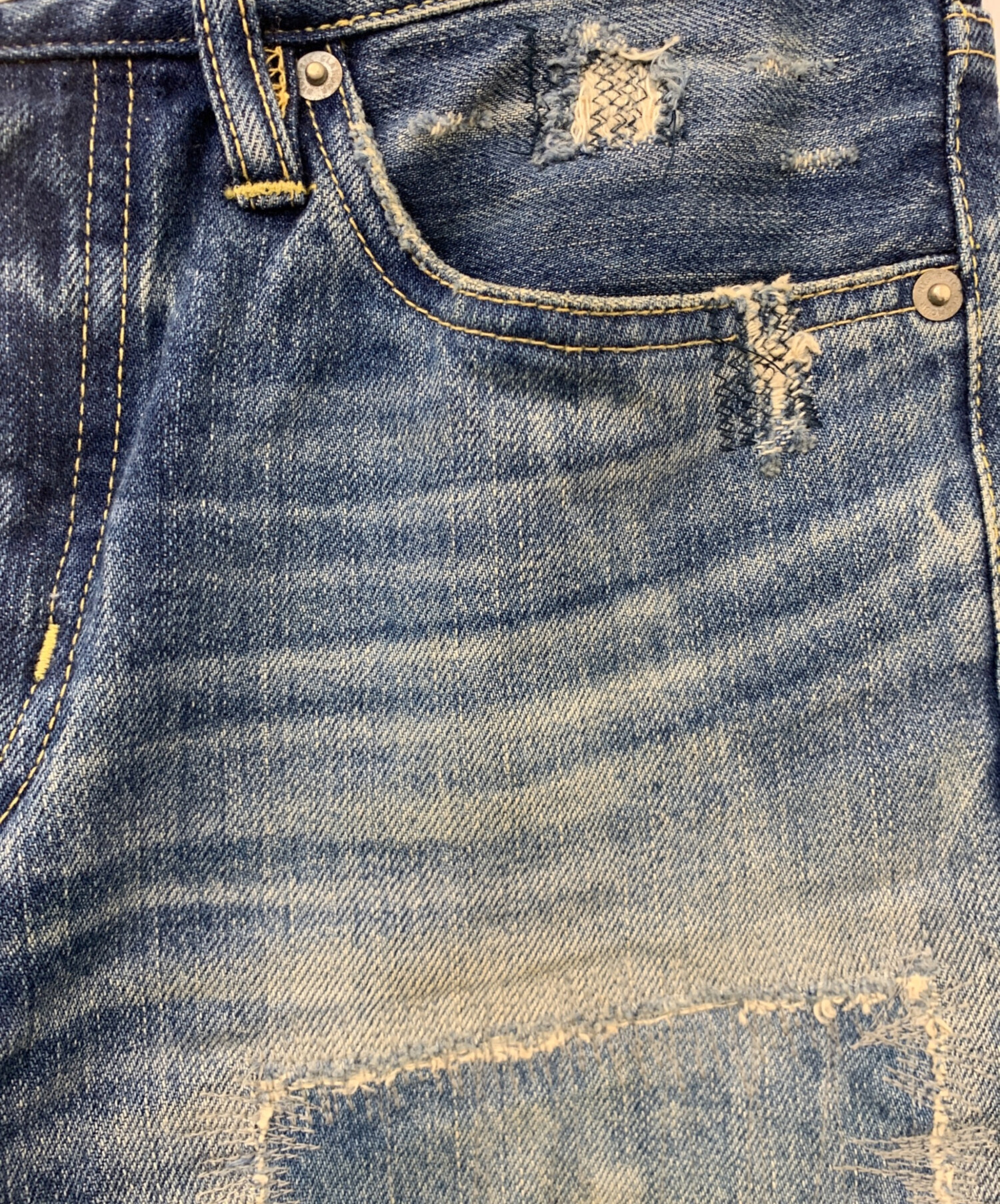 • Hysteric Glamour(ヒステリックグラマー)Hysteric Glamour (ヒステリックグラマー) ダメージデニムパンツ インディゴ サイズ:W29/L32の古着・服飾アイテム ヨゴレ・ダメージ有