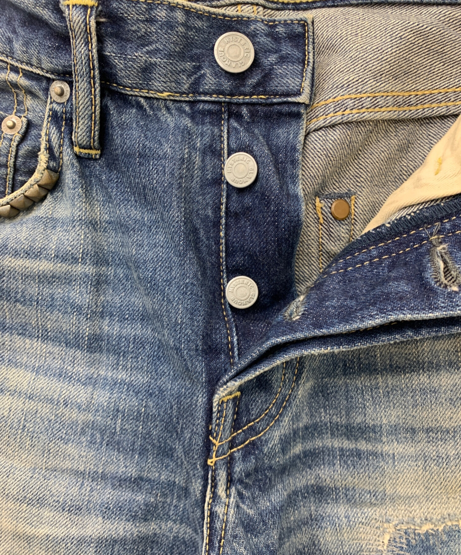 • Hysteric Glamour(ヒステリックグラマー)Hysteric Glamour (ヒステリックグラマー) ダメージデニムパンツ インディゴ サイズ:W29/L32の古着・服飾アイテム ヨゴレ有