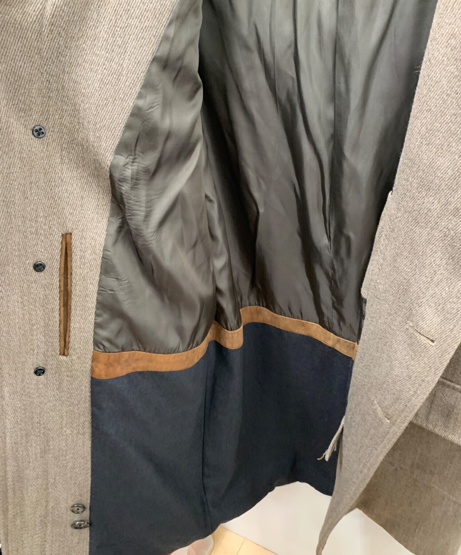 目立つシミや汚れ、におい等がある場合は商品画像や説明文にて極力表記させていただいておりますが、中古品という商品の特性上、全ての瑕疵や不備、洋服直し箇所を撮影・記載をすることは難しくなっております。また、ほとんどのアイテムは店頭と併売しておりますため、出品掲載時からコンディションが変動している場合もございます。あらかじめご了承くださいませ。