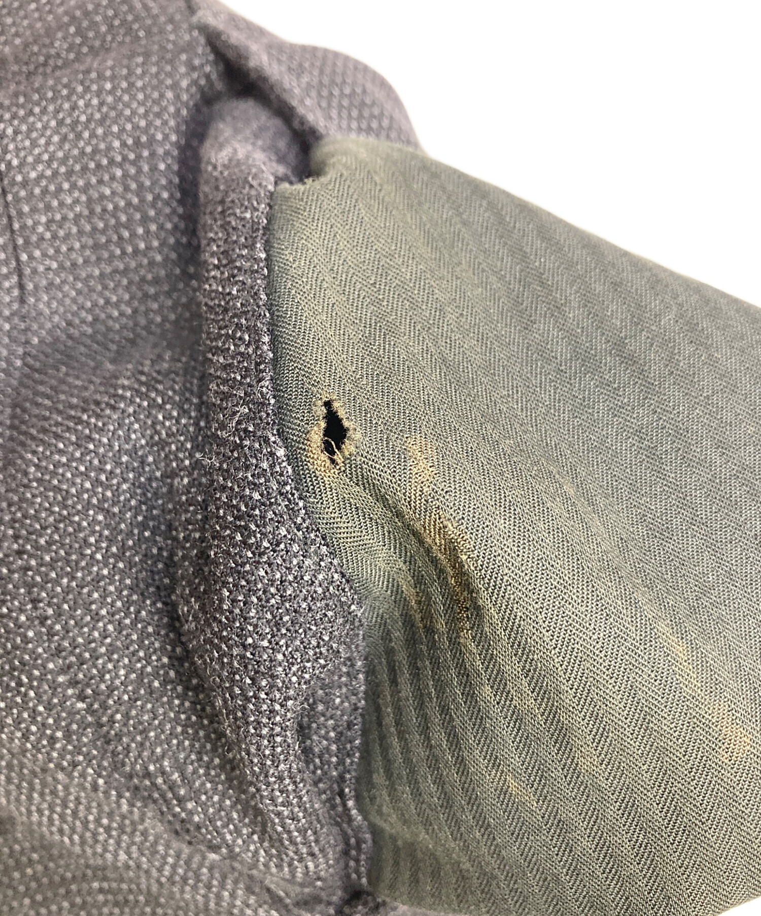 目立つシミや汚れ、におい等がある場合は商品画像や説明文にて極力表記させていただいておりますが、中古品という商品の特性上、全ての瑕疵や不備、洋服直し箇所を撮影・記載をすることは難しくなっております。また、ほとんどのアイテムは店頭と併売しておりますため、出品掲載時からコンディションが変動している場合もございます。あらかじめご了承くださいませ。