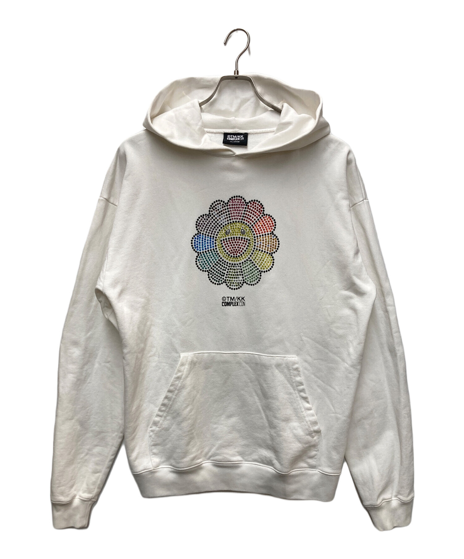 • Complex con(コンプレックス コン)Complex con (コンプレックス コン) TAKASHI MURAKAMI (タカシ ムラカミ) SWAROVSKI CRYSTAL FLOWER HOODIE ホワイト サイズ:XLARGEの古着・服飾アイテム 表面にヨゴレ、シミがございます。