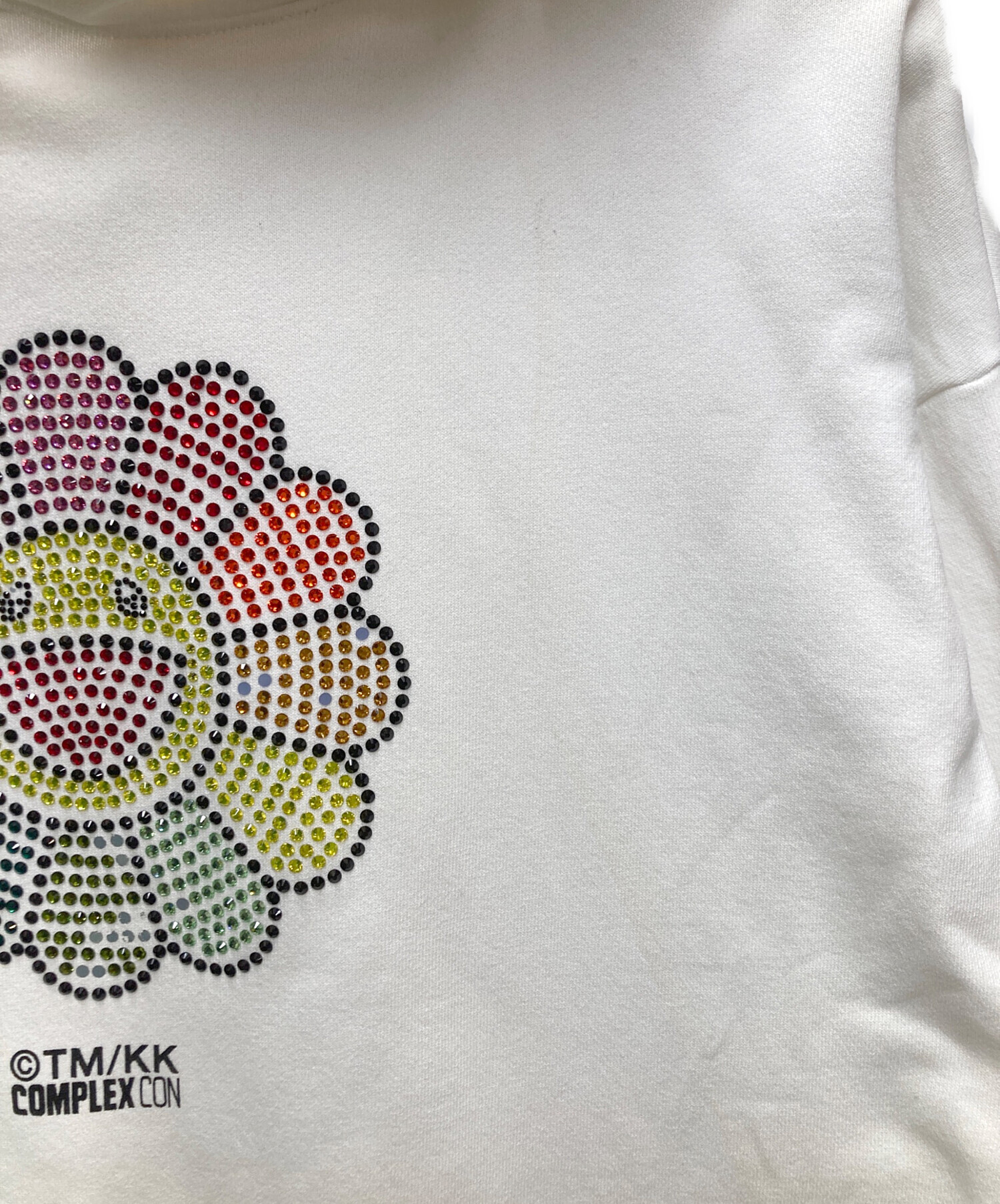 • Complex con(コンプレックス コン)Complex con (コンプレックス コン) TAKASHI MURAKAMI (タカシ ムラカミ) SWAROVSKI CRYSTAL FLOWER HOODIE ホワイト サイズ:XLARGEの古着・服飾アイテム