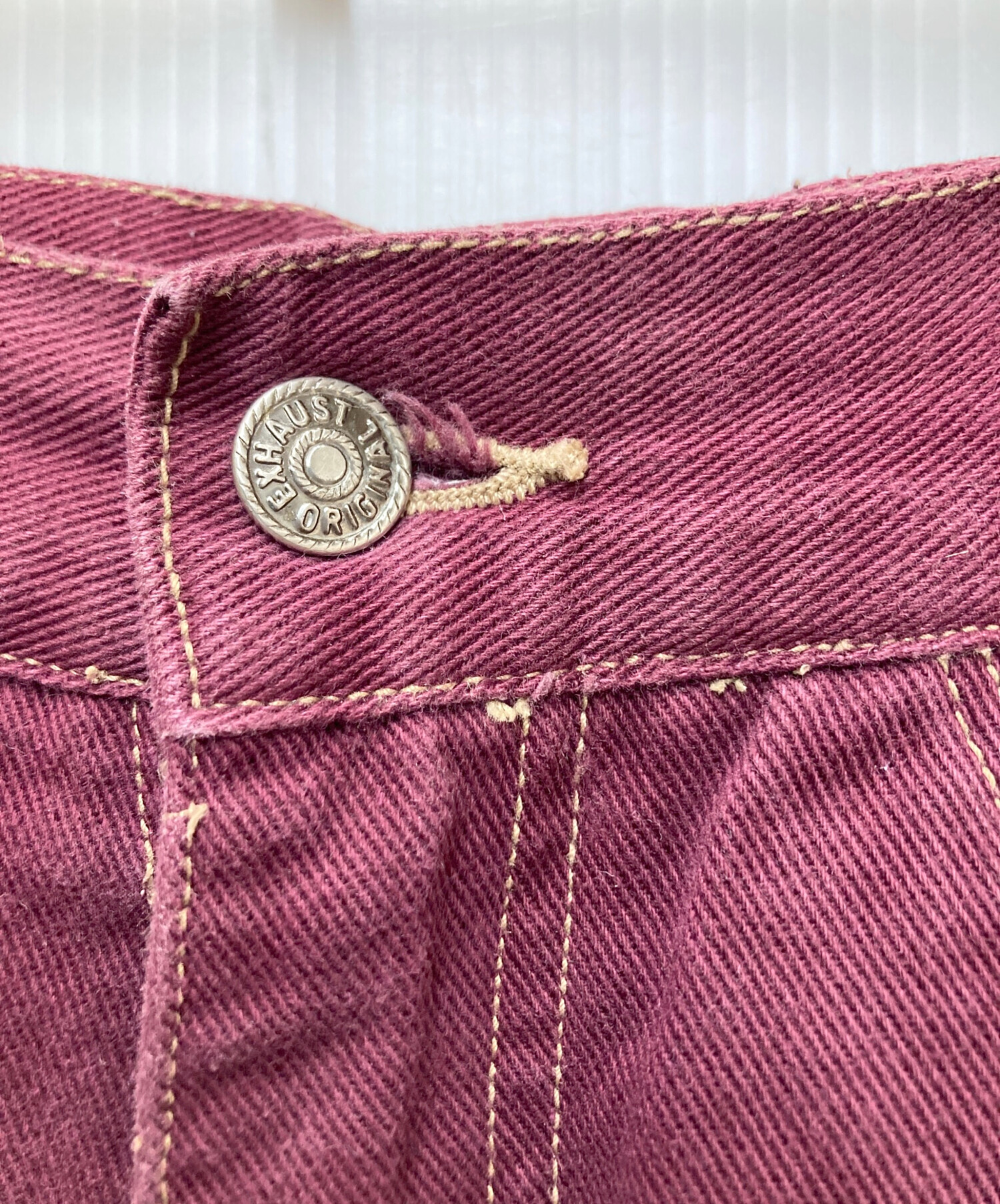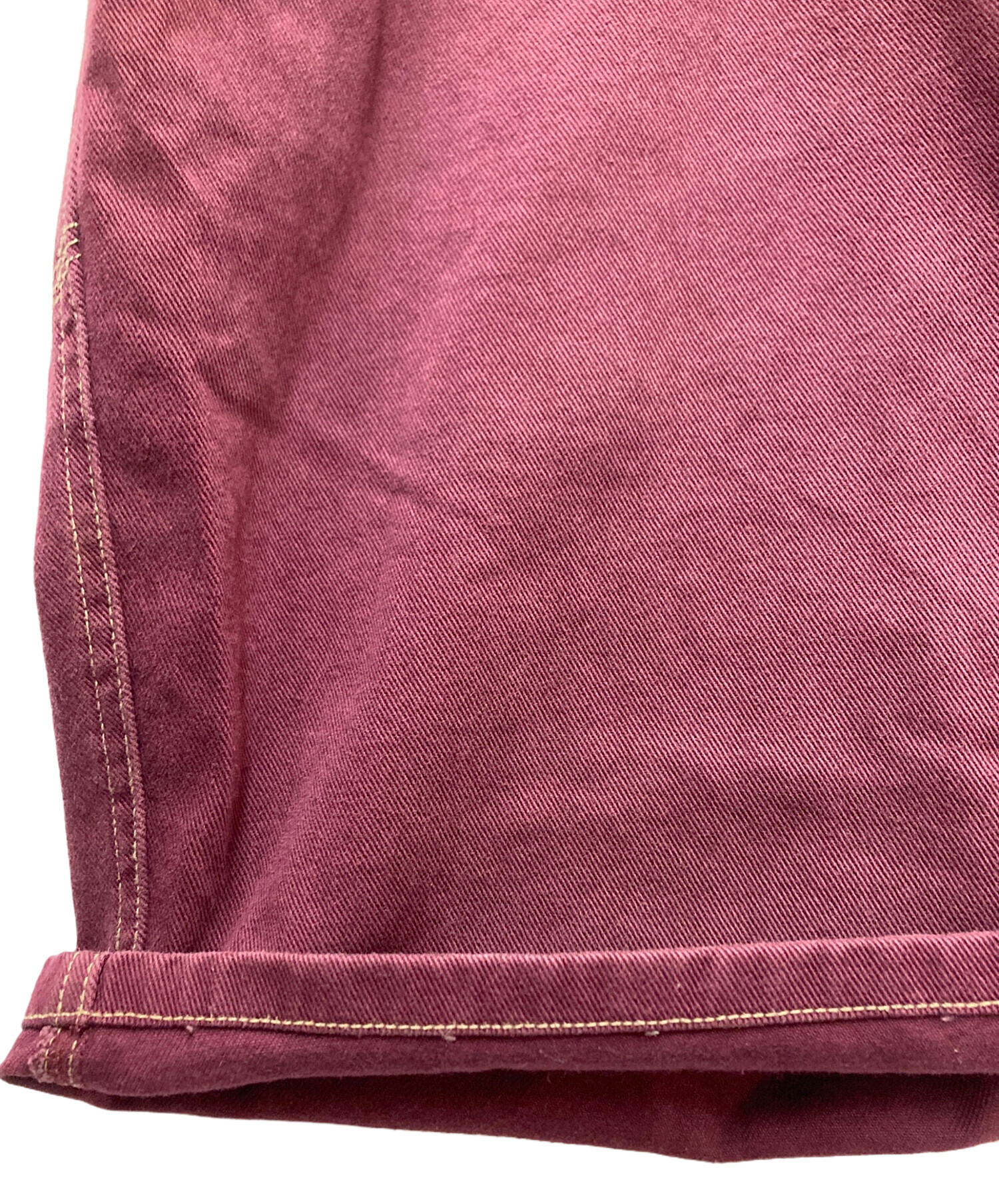 • EXHAUST(エグゾースト)EXHAUST (エグゾースト) デニムハーフパンツ ボルドー サイズ:SIZE 91cm (W36)の古着・服飾アイテム 右股下内側にヨゴレ有