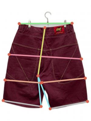 • EXHAUST(エグゾースト)EXHAUST (エグゾースト) デニムハーフパンツ ボルドー サイズ:SIZE 91cm (W36)の古着・服飾アイテム 内側毛羽立ち有