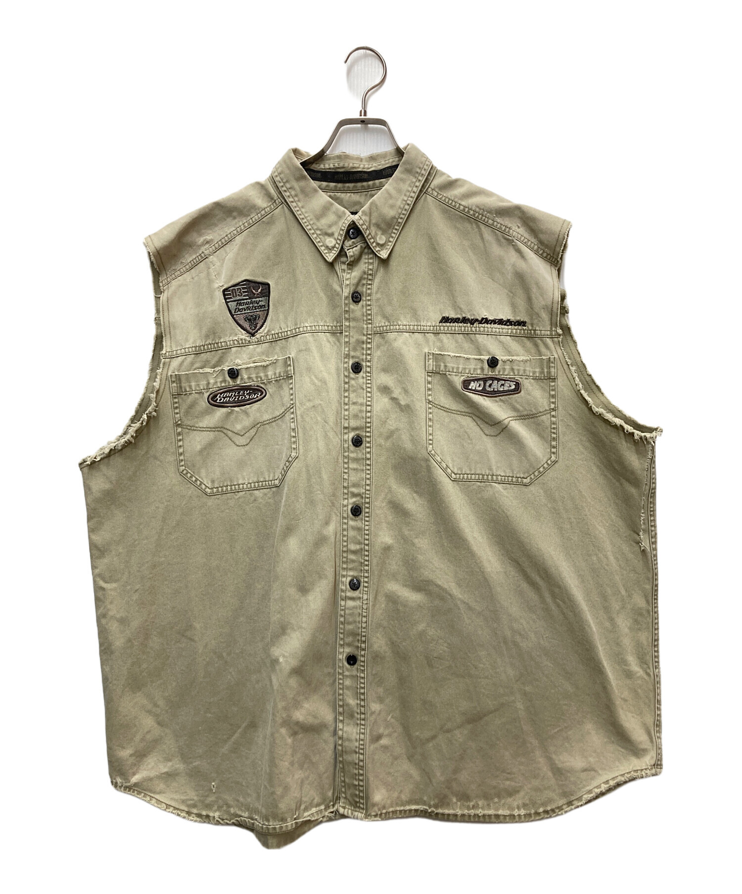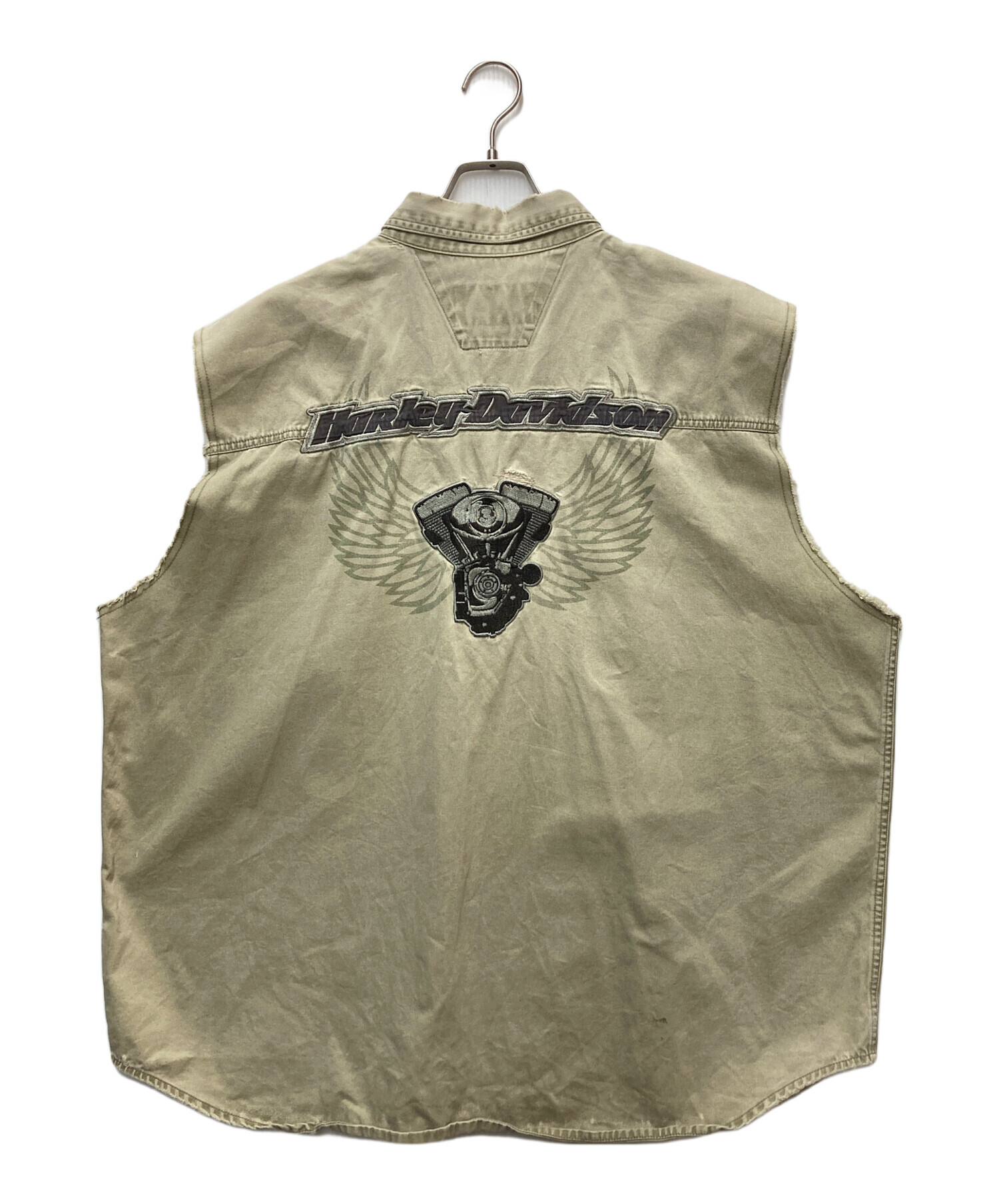 • HARLEY-DAVIDSON(ハーレーダビッドソン)HARLEY-DAVIDSON (ハーレーダビッドソン) ノースリーブシャツ ベージュ サイズ:XXXLの古着・服飾アイテム 衿ヤブレ有