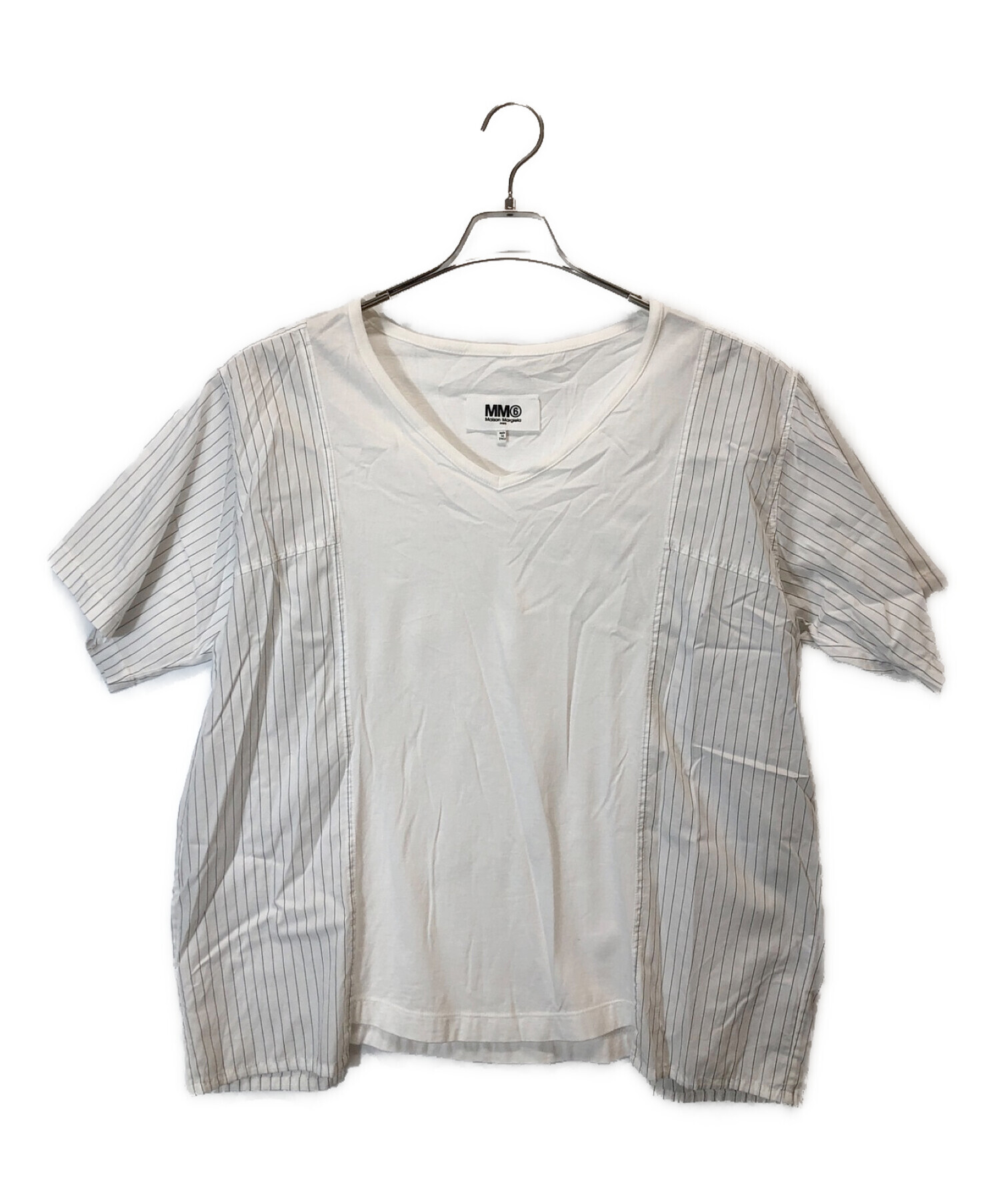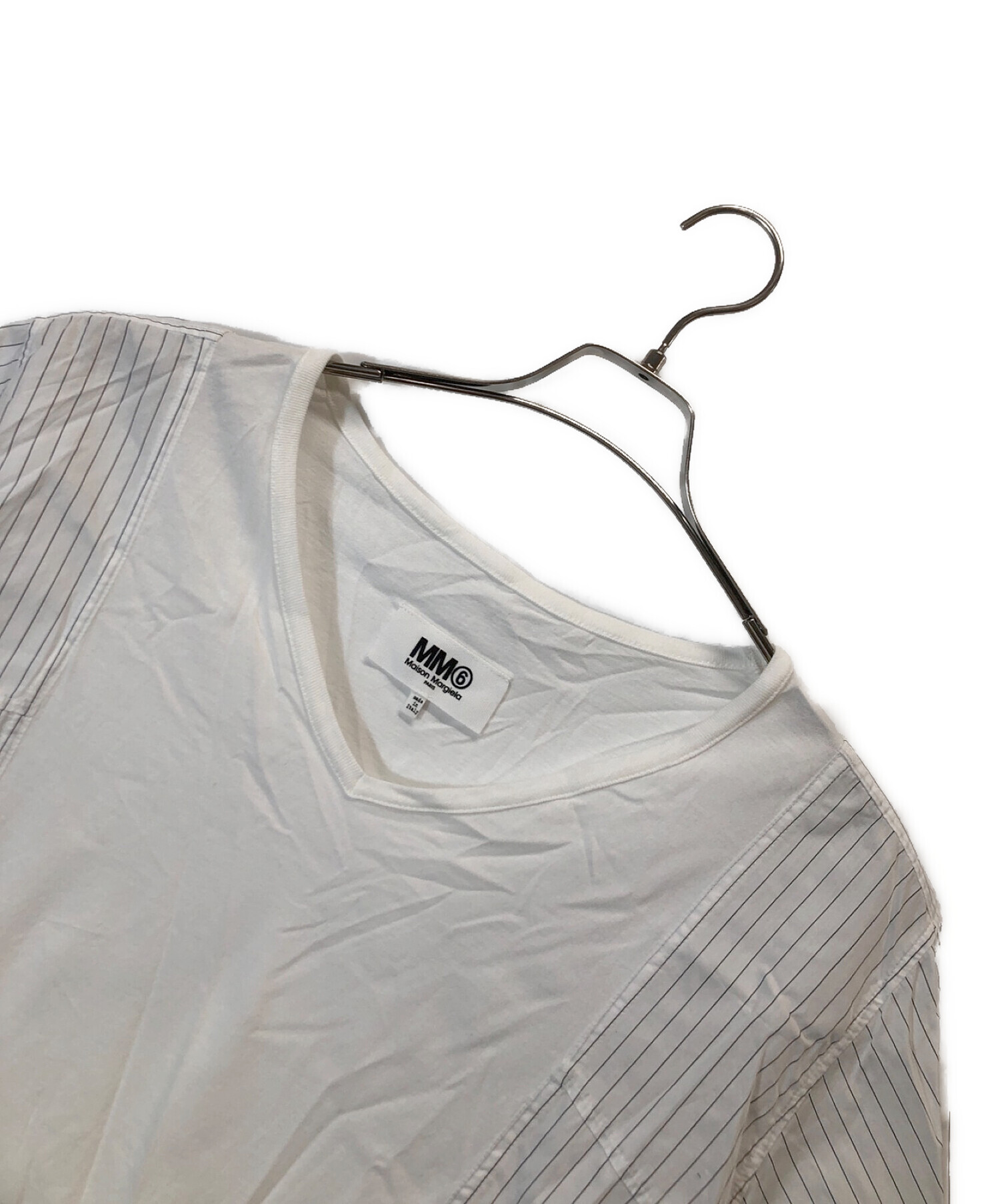 | スタッフコメント | MM6 Maison Margielaの切替VネックTシャツです。 シンプルなデザインで、様々なスカートやパンツに合う品となっております。 |