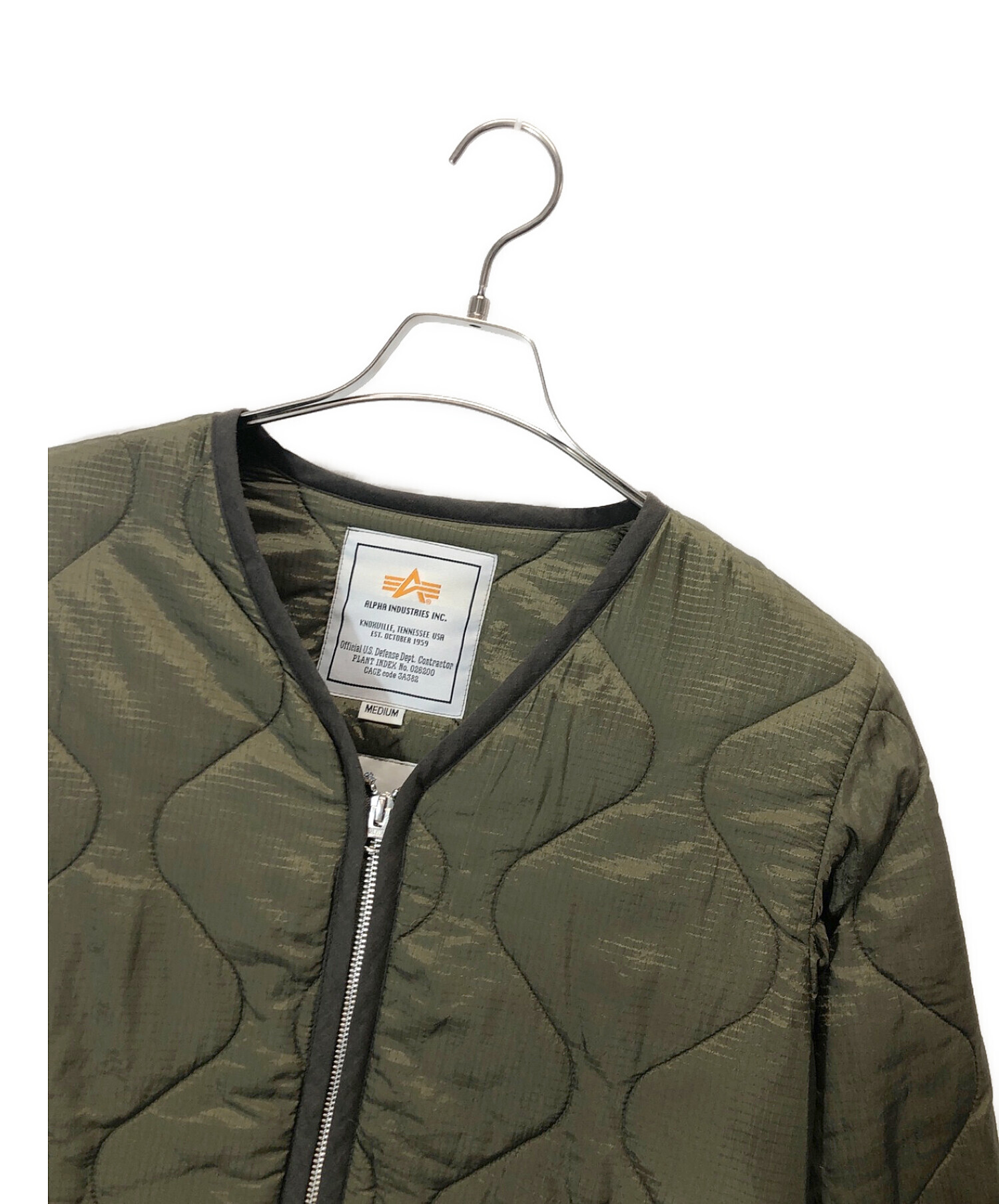 • EDIFICE(エディフィス)EDIFICE (エディフィス) ALPHA INDUSTRIES (アルファインダストリーズ) ライナーキルティングジャケット オリーブ サイズ:Mの古着・服飾アイテム シミ有