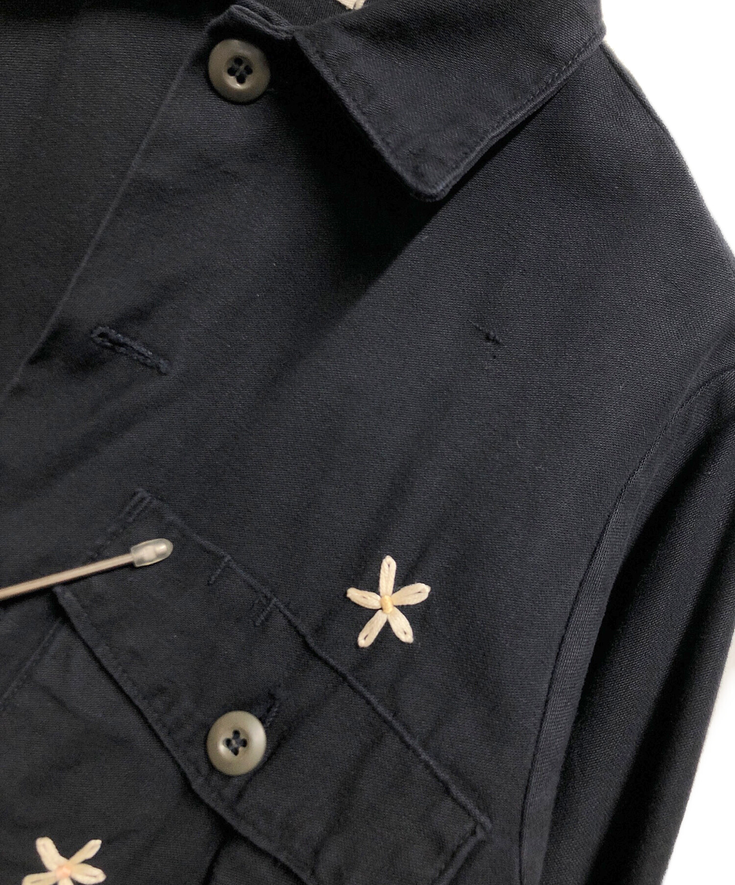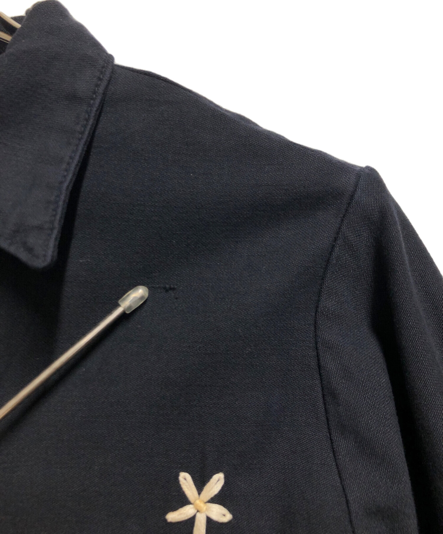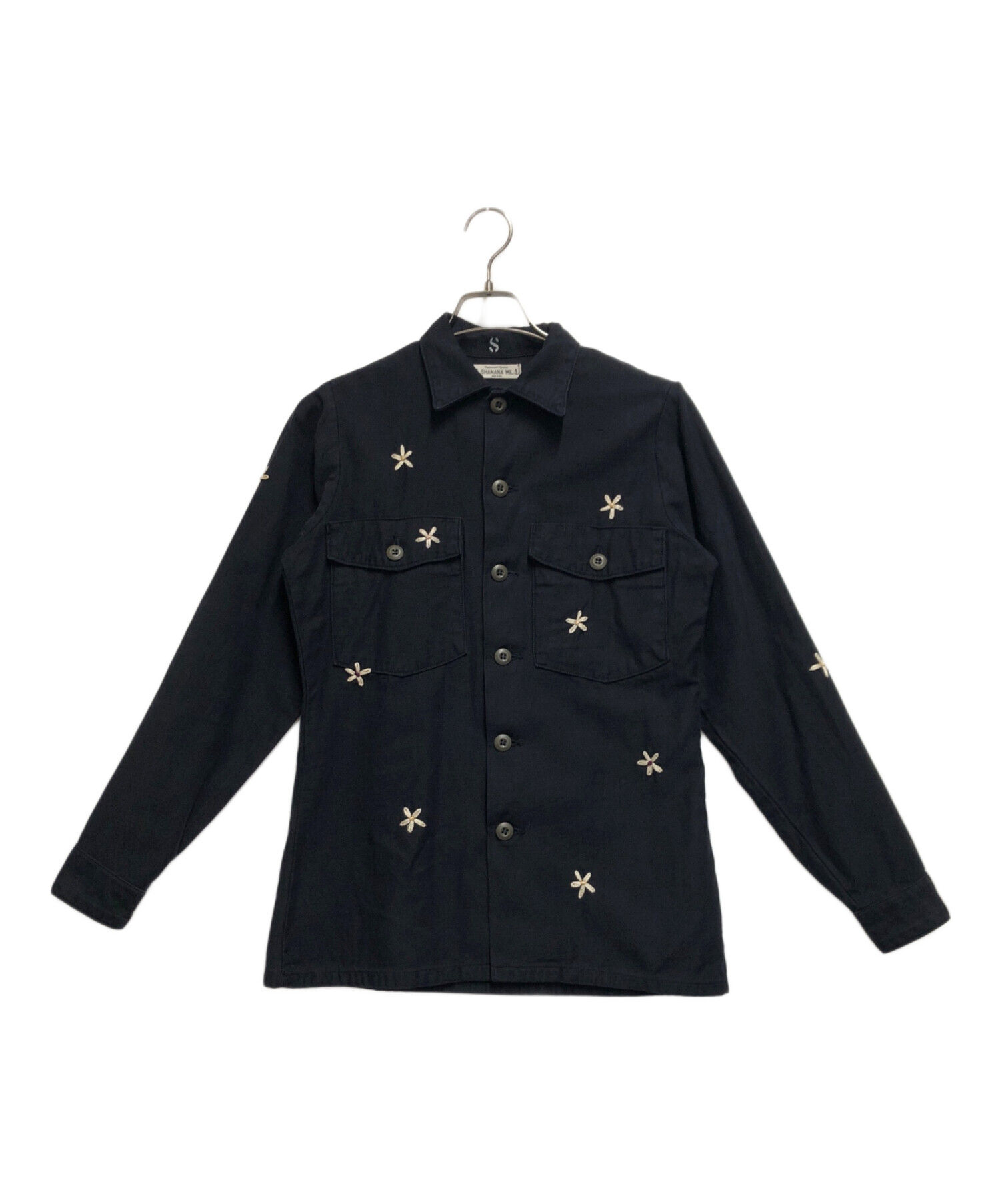 • SHANANA MIL(シャナナミル)SHANANA MIL (シャナナミル) ユーティリティシャツ ネイビー サイズ:Sの古着・服飾アイテム 下部刺繍ゆるみ有